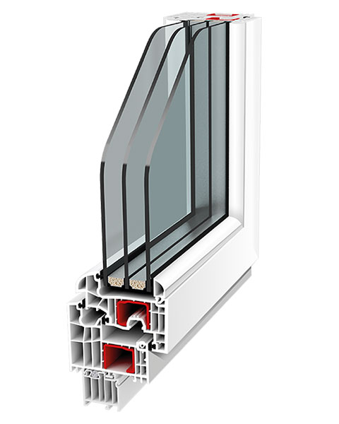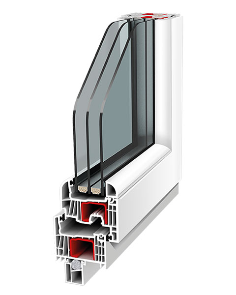 Система Design-3D. Подвійне ущільнення в притворі між рамою і стулкою зовні та додаткове ущільнення всередині, перевищують як сьогоднішні, так і майбутні вимоги будівельної фізики до вікон і дверей.