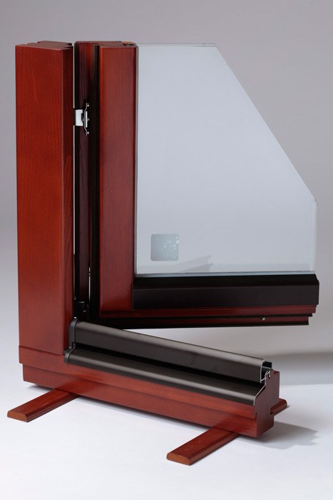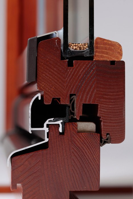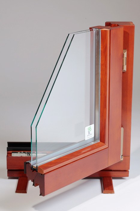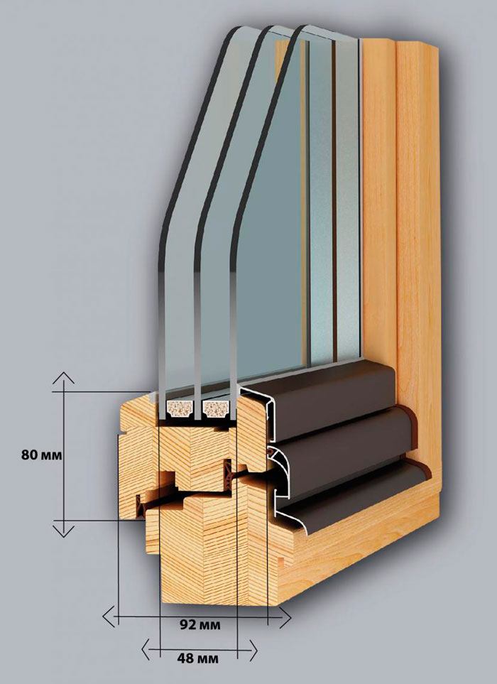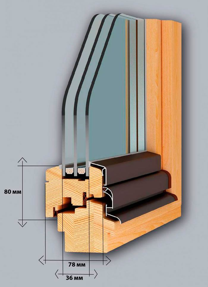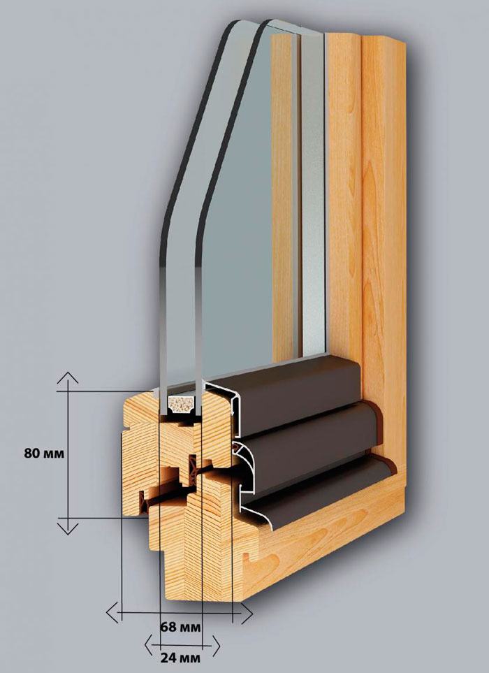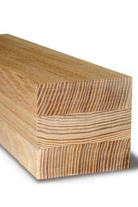 Використовується трьохшаровий клеєний брус з сосни або дубу, зрощений по довжині на "міни-шип" (довжиною 6 м) перерізом 72-86 мм (склейка 24-24-24 мм).