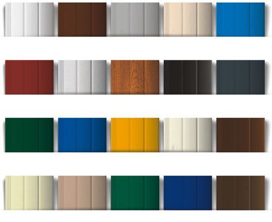 Ми пропонуємо чотири базові кольори - білий, коричневий, сірий і бежевий. Можлива фарбування в будь-який колір за каталогом RAL, а також нанесення малюнка і тексту на захисні ролети.