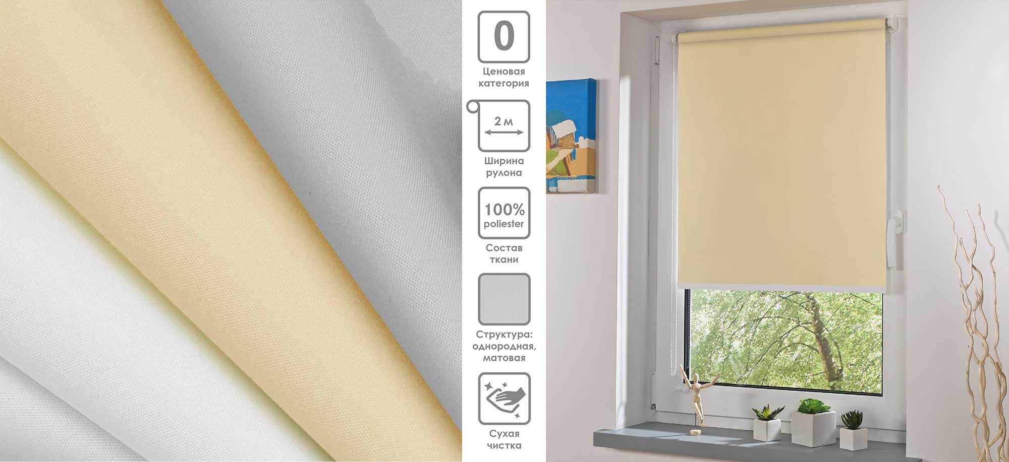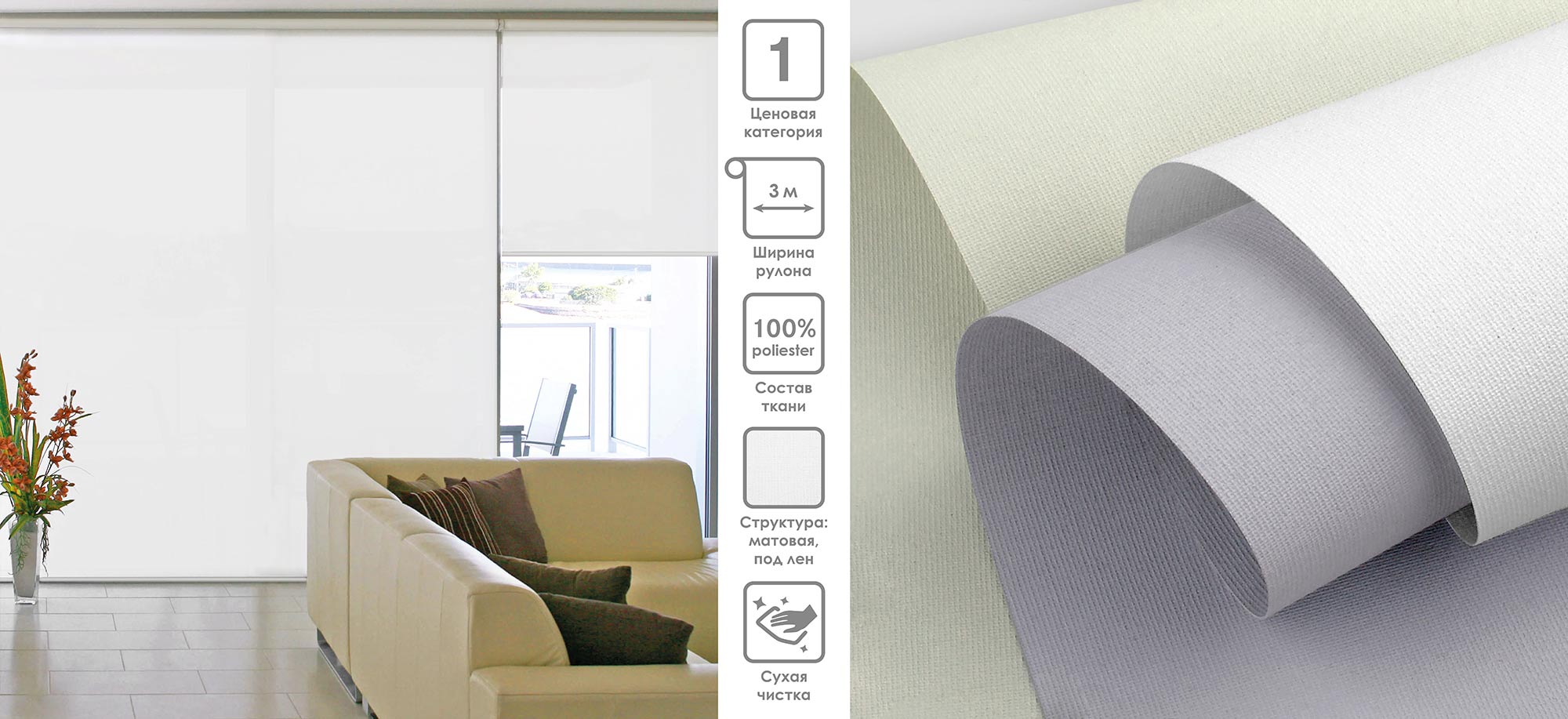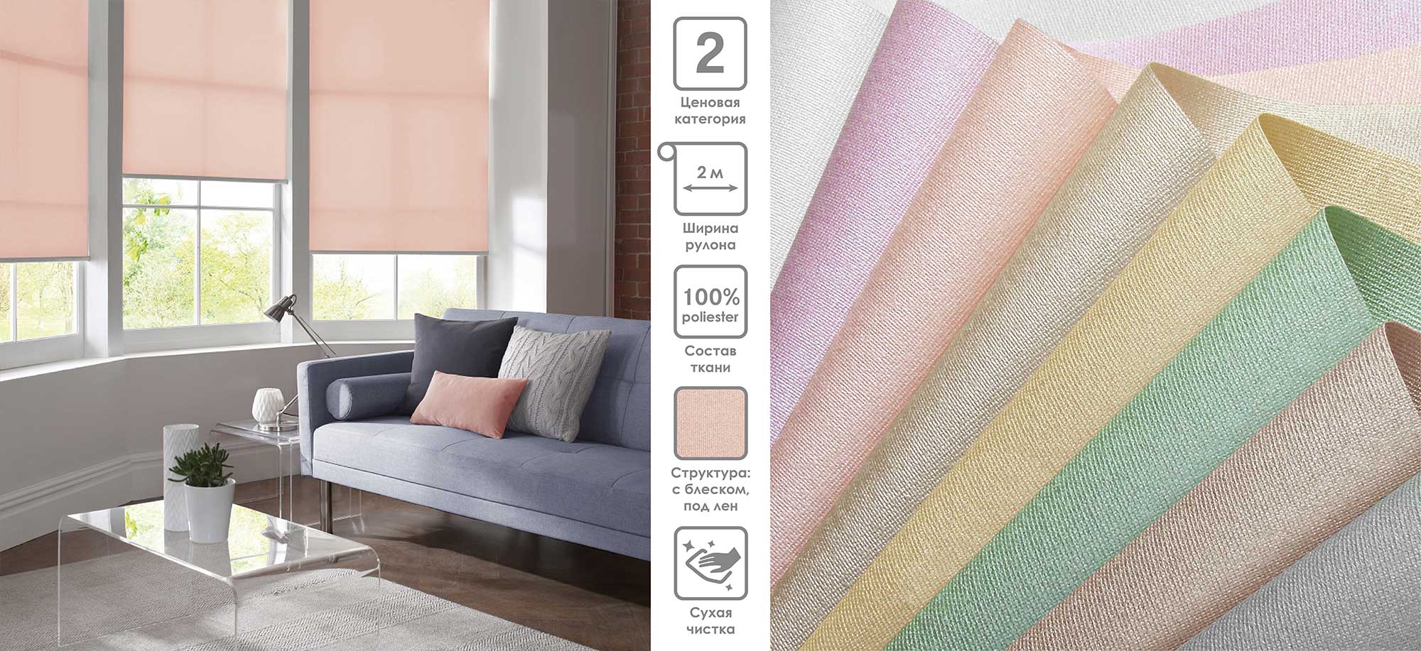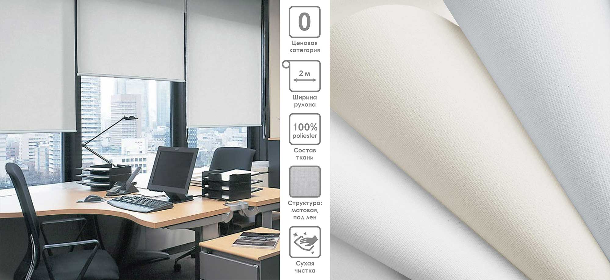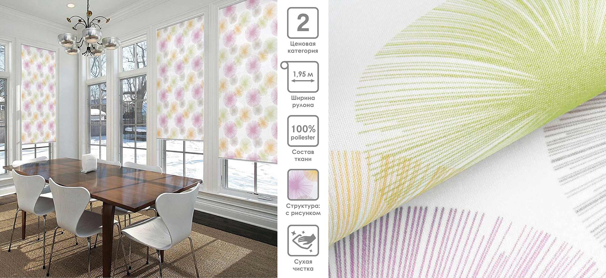 Система «Деколюкс» являє собою тканинну ролету в коробі з пружинним механізмом.