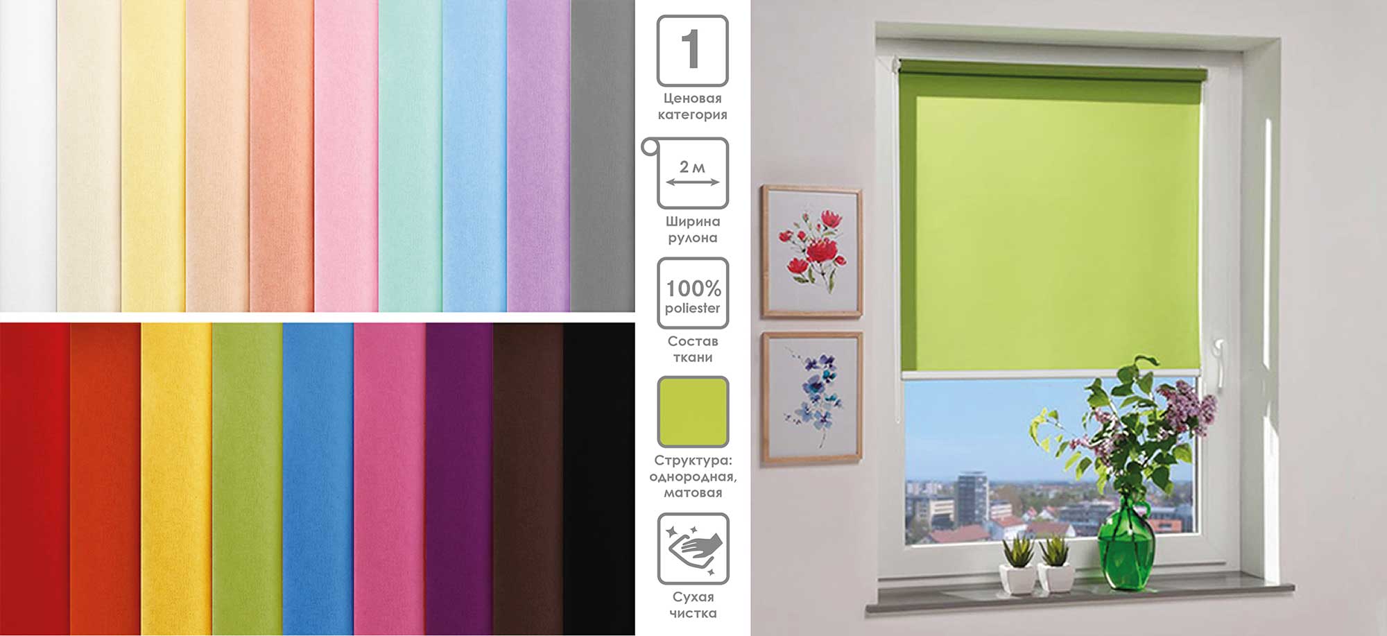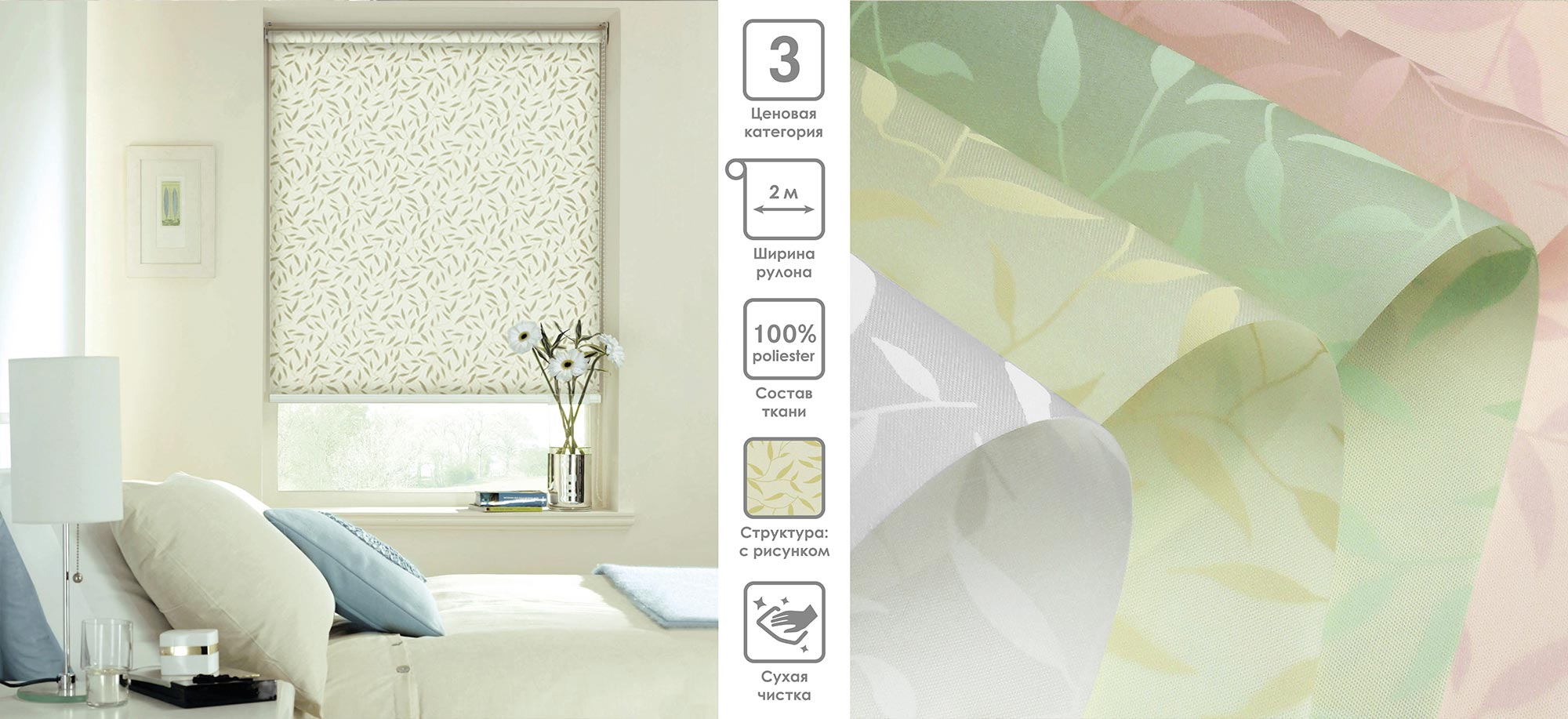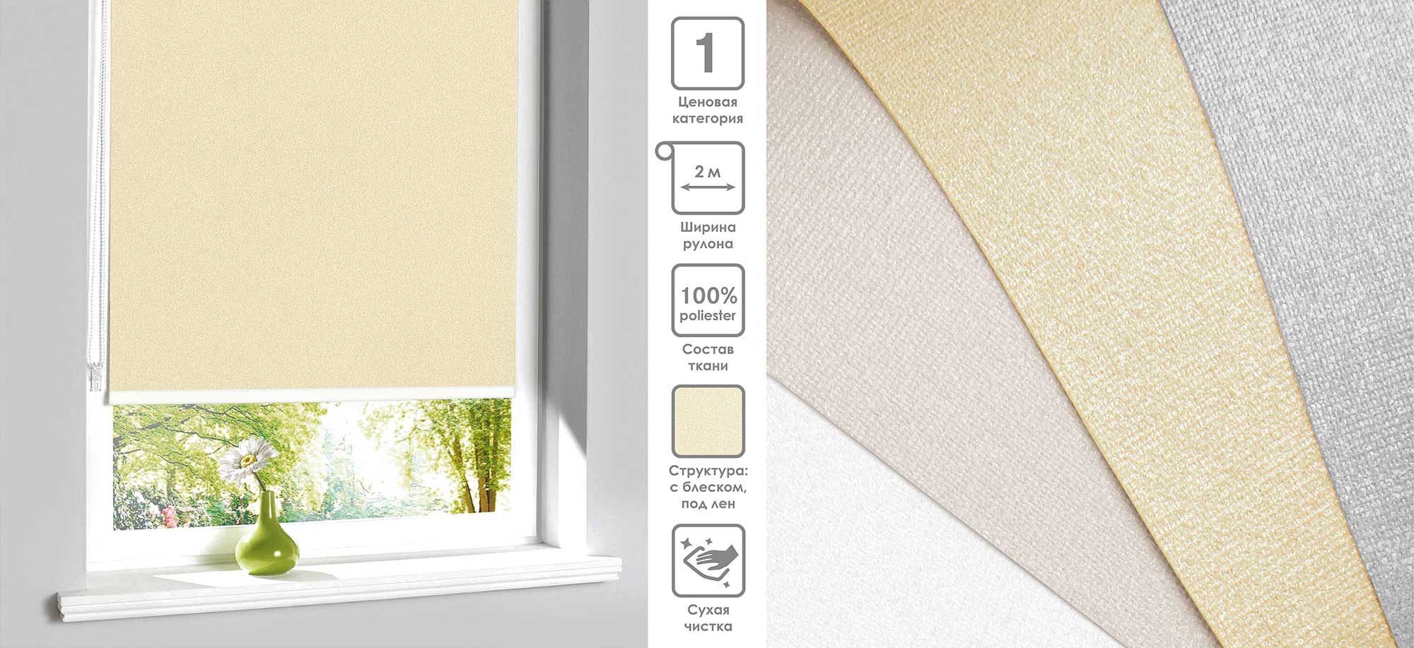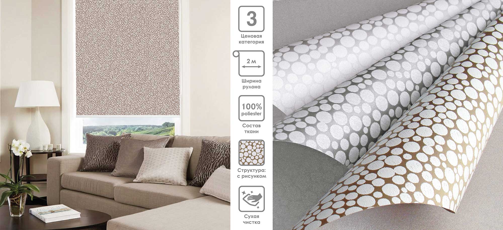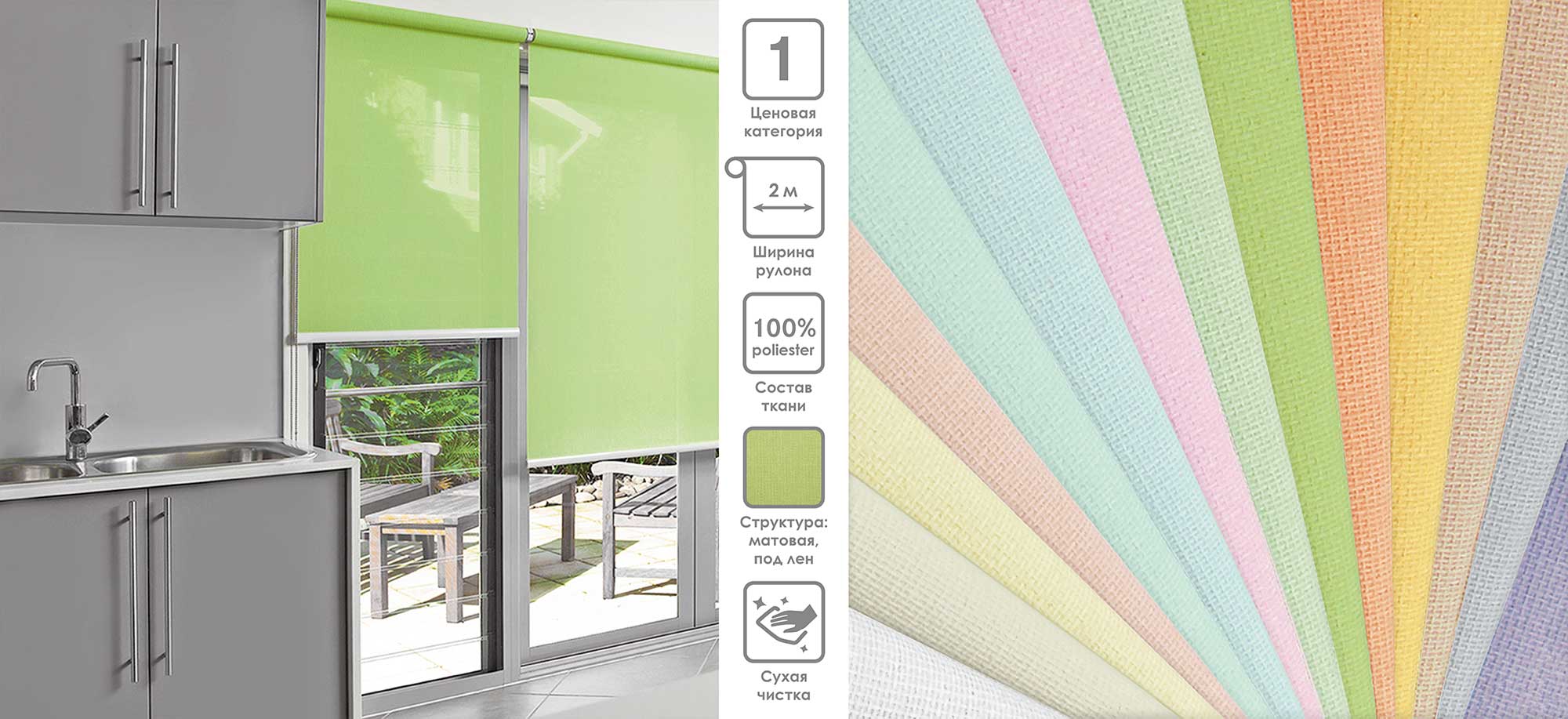 Система «Деколюкс» являє собою тканинну ролету в коробі з пружинним механізмом.