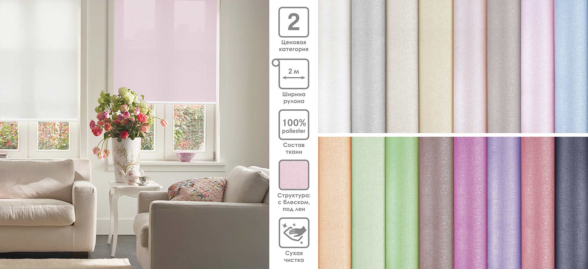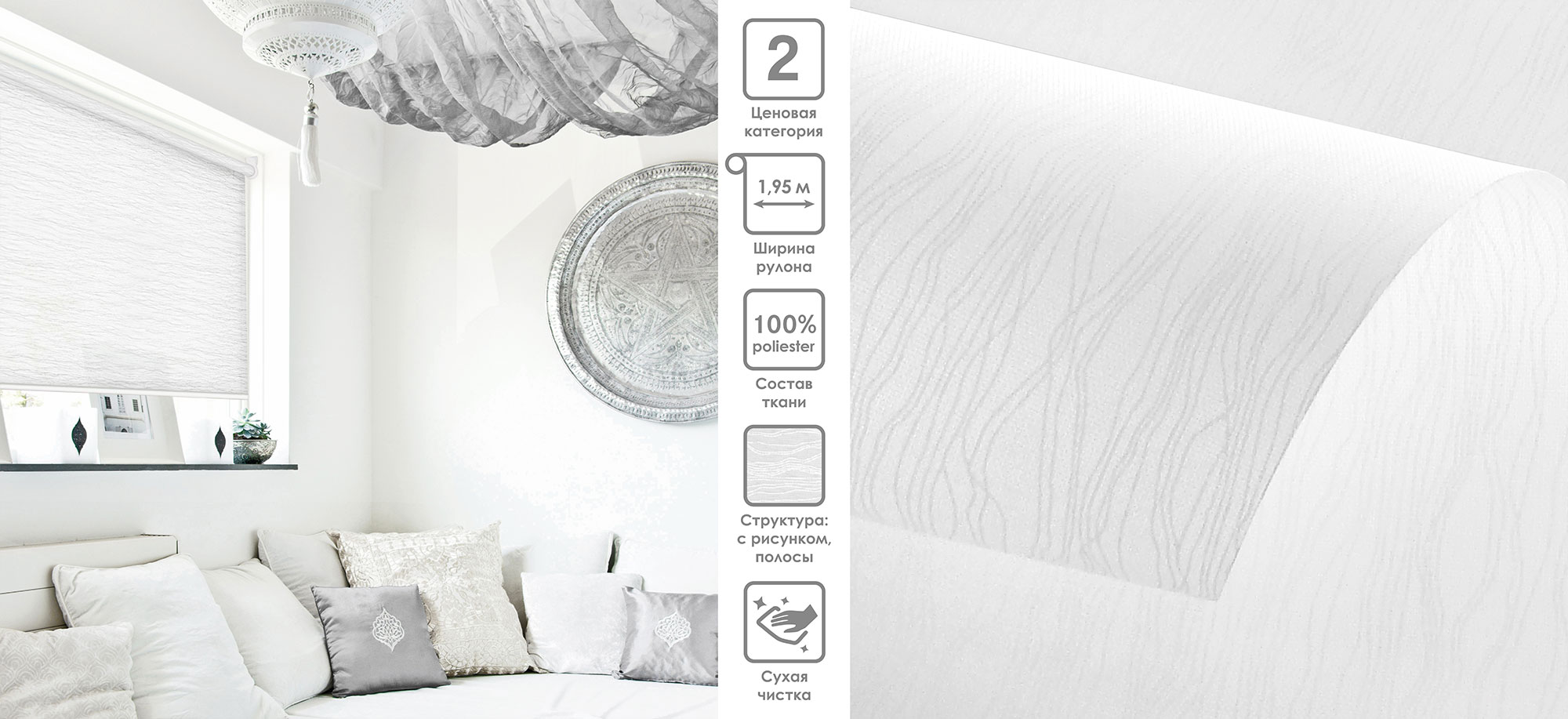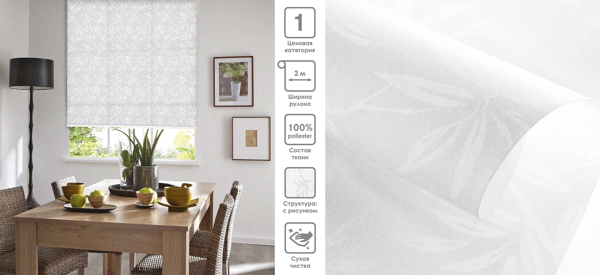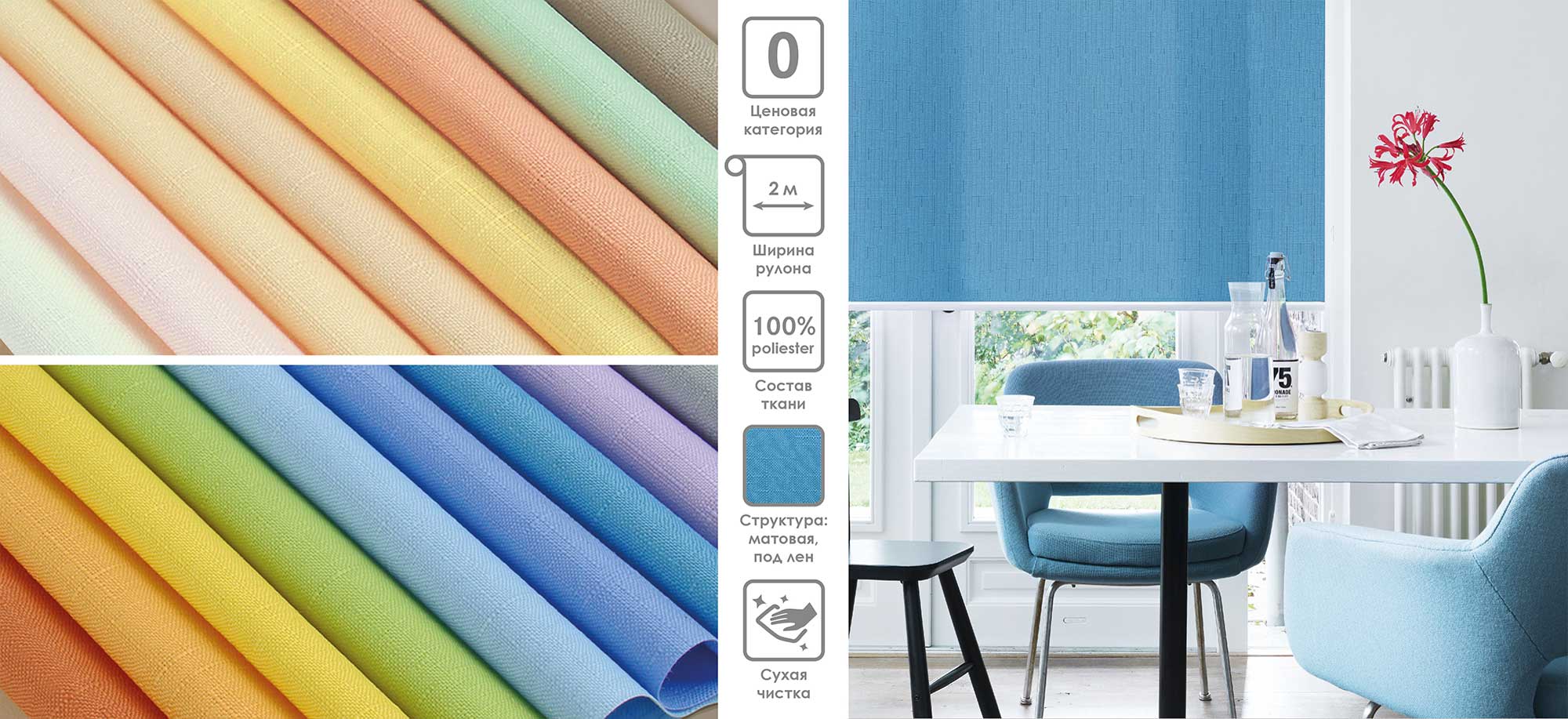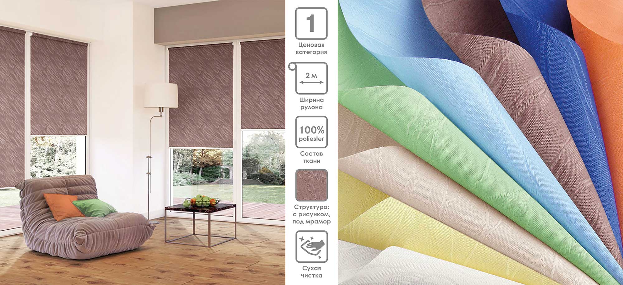 Система «Деколюкс» являє собою тканинну ролету в коробі з пружинним механізмом.