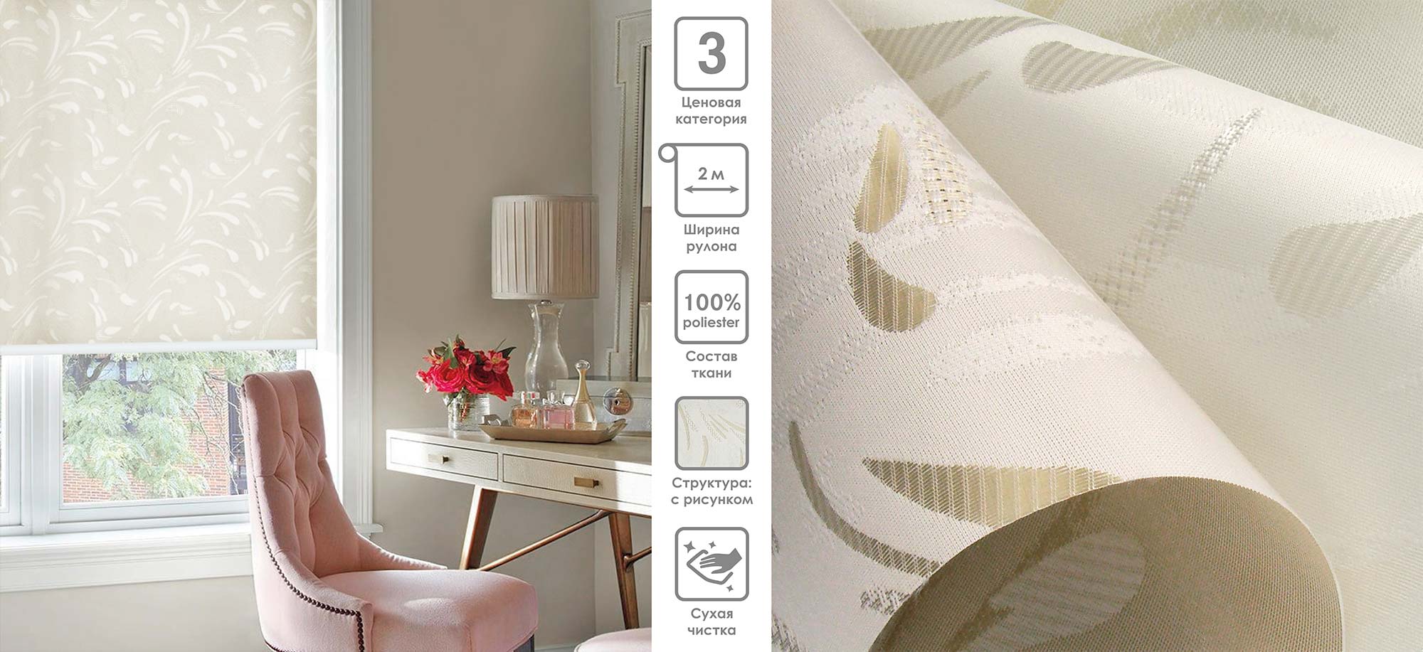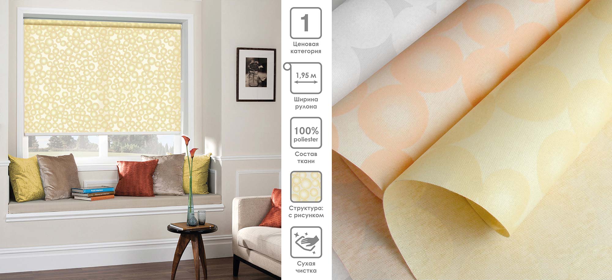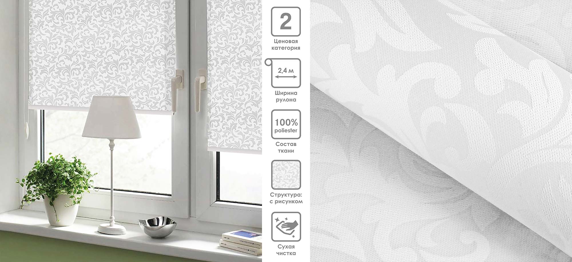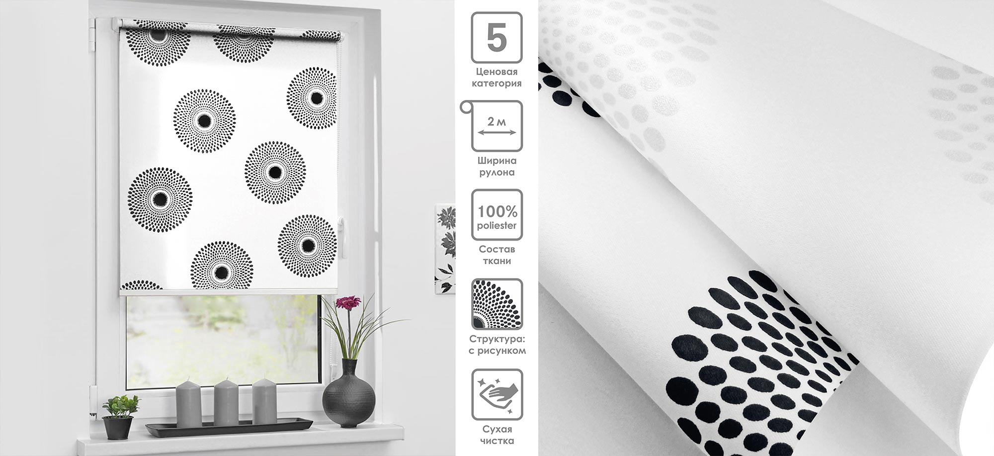Система «Деколюкс» являє собою тканинну ролету в коробі з пружинним механізмом.