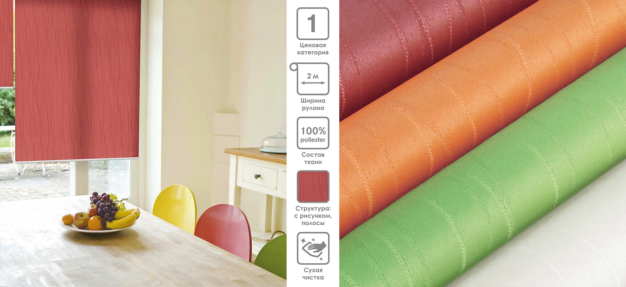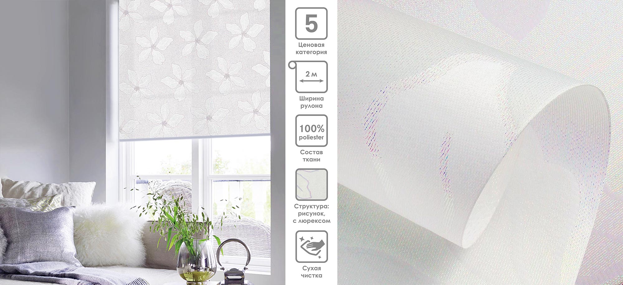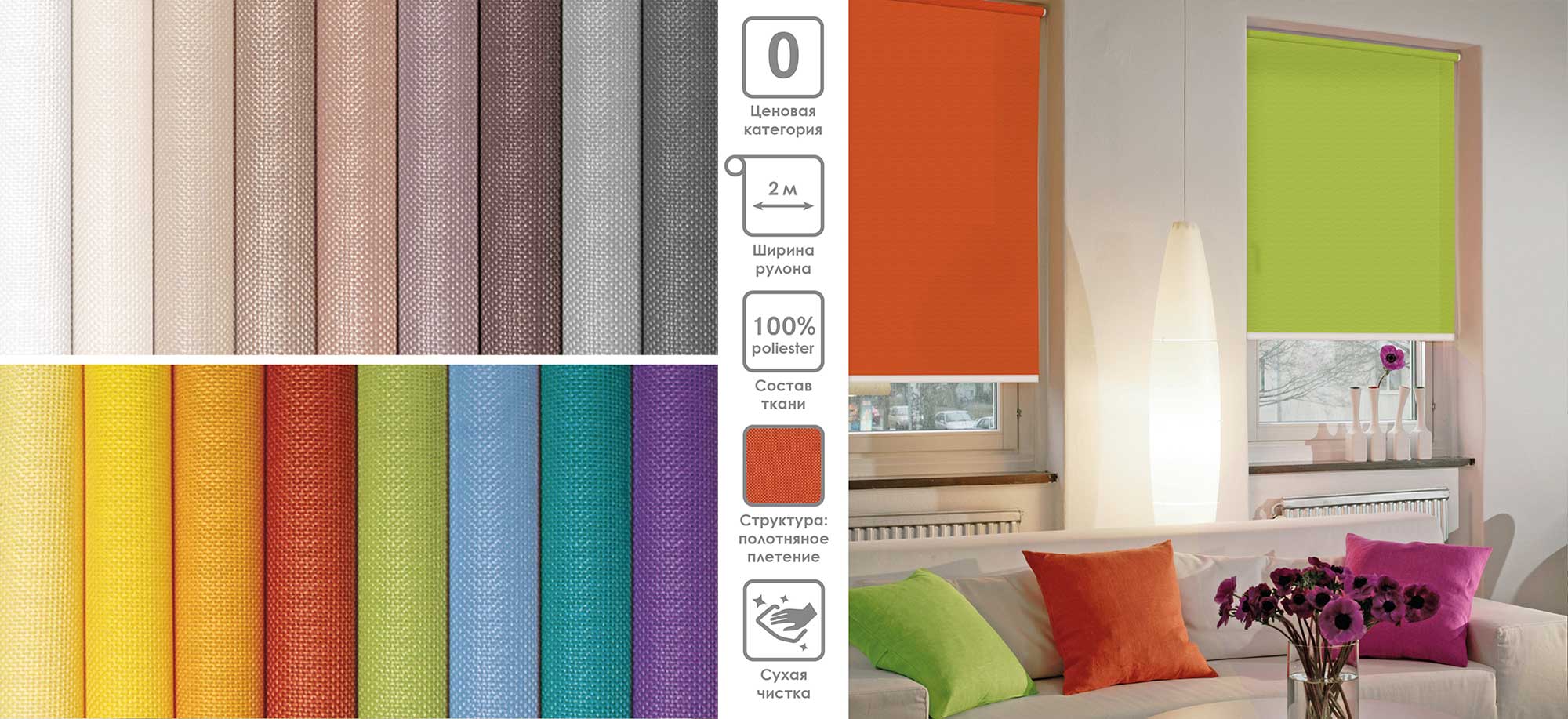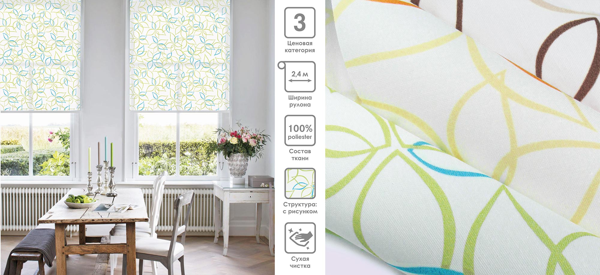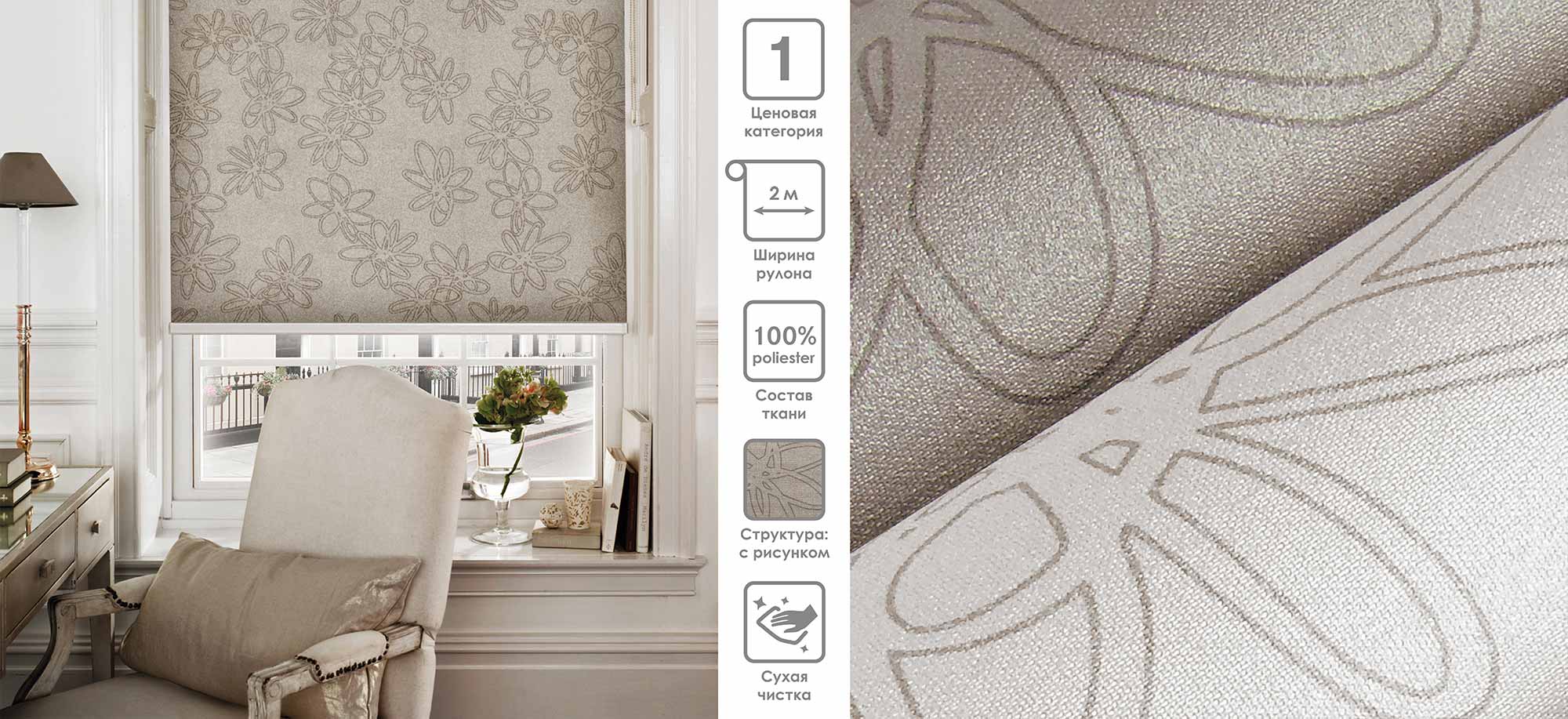 Система «Деколюкс» являє собою тканинну ролету в коробі з пружинним механізмом.