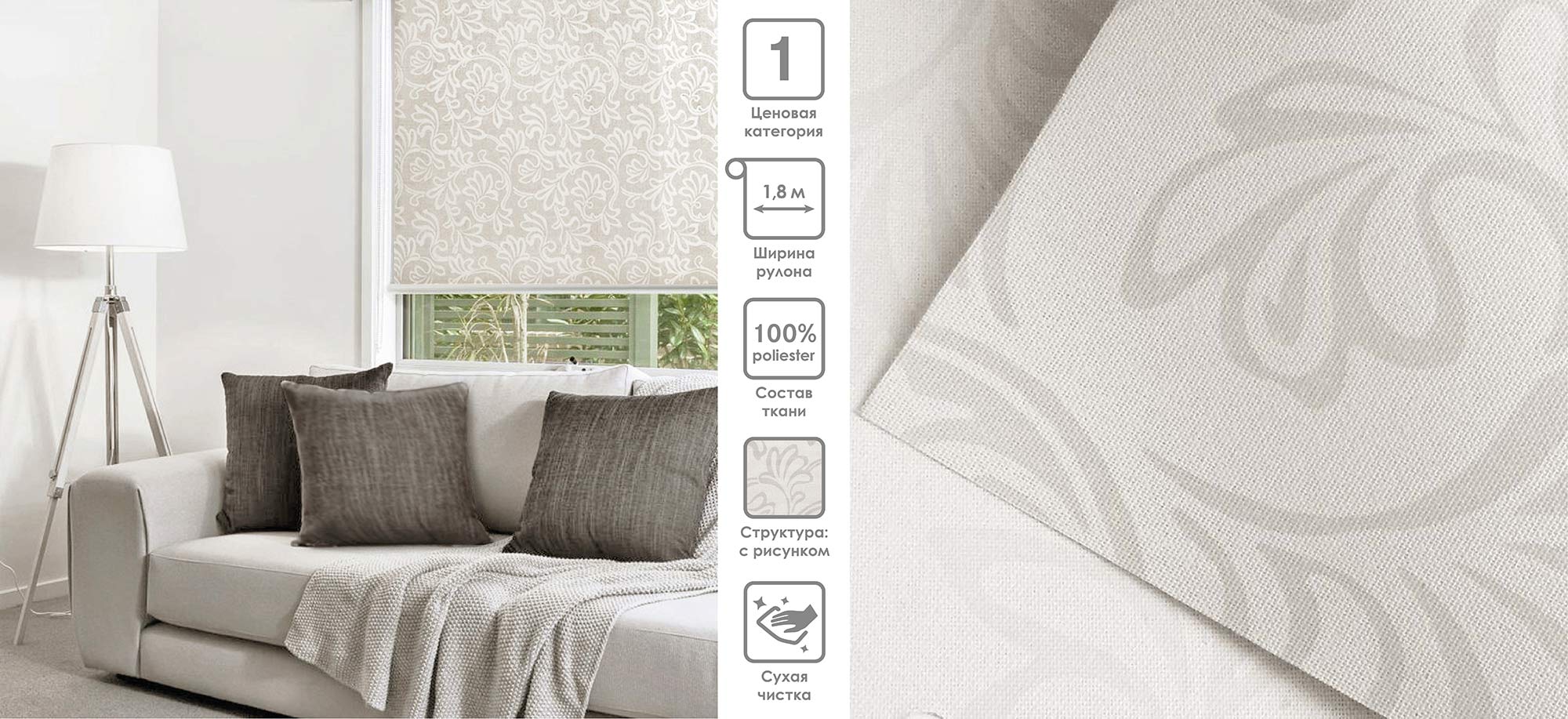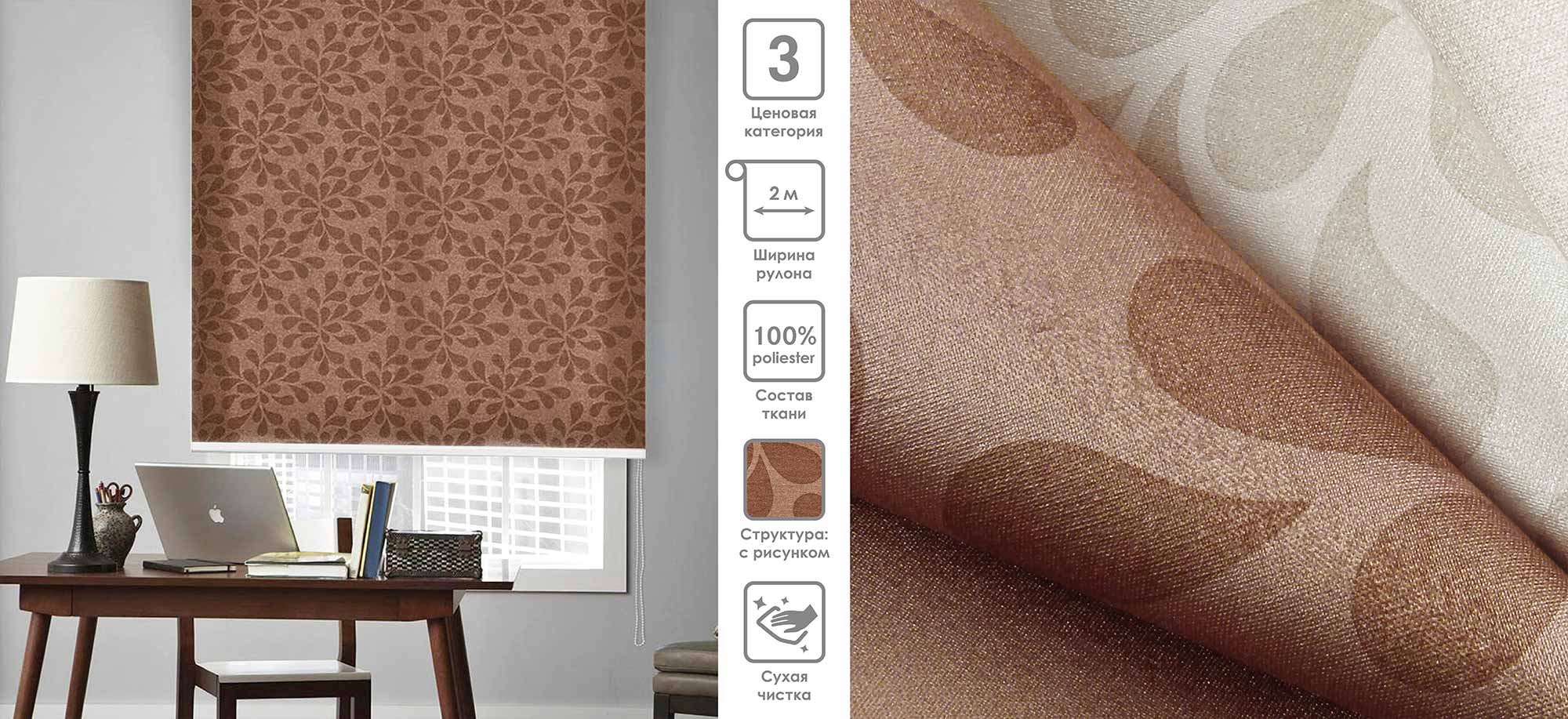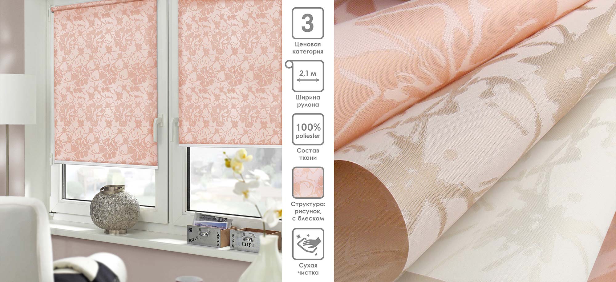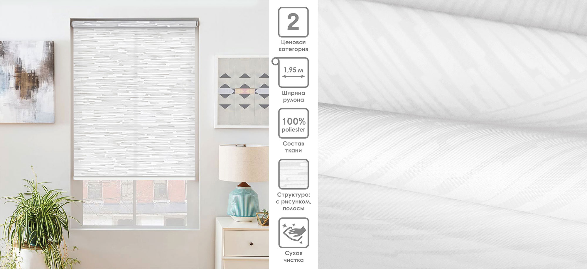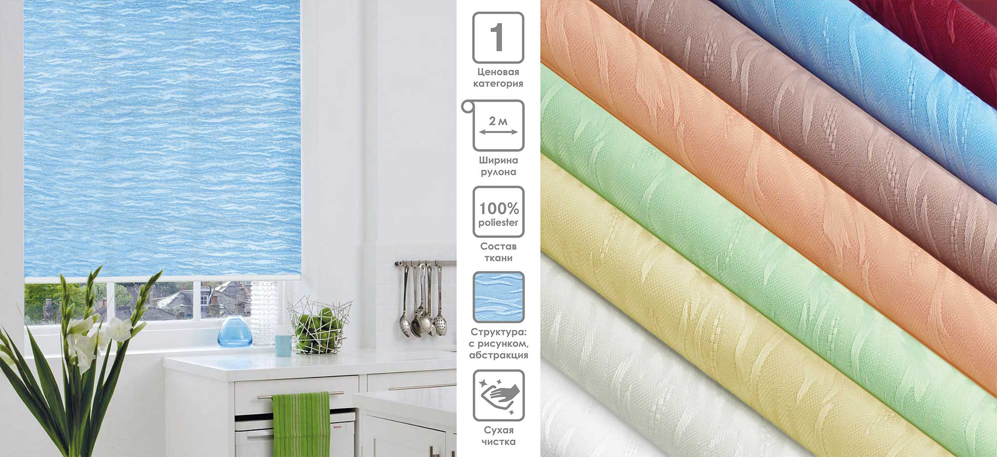 Система «Деколюкс» являє собою тканинну ролету в коробі з пружинним механізмом.