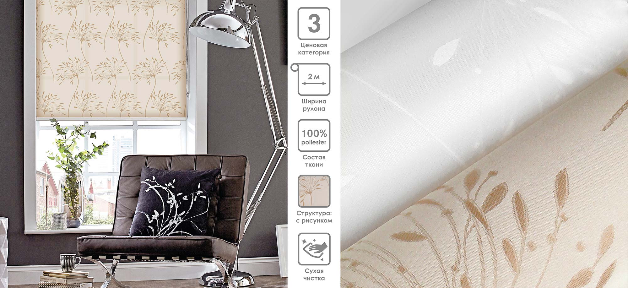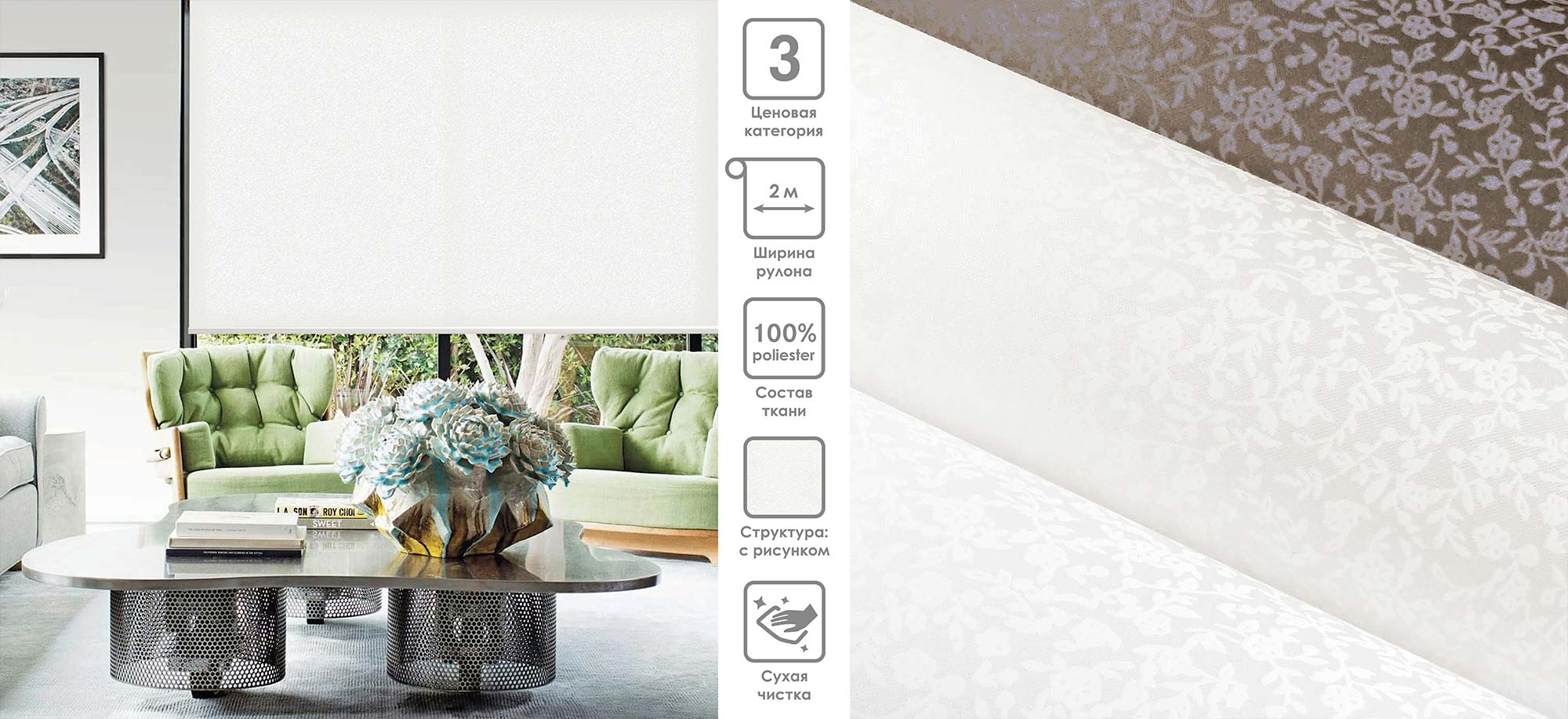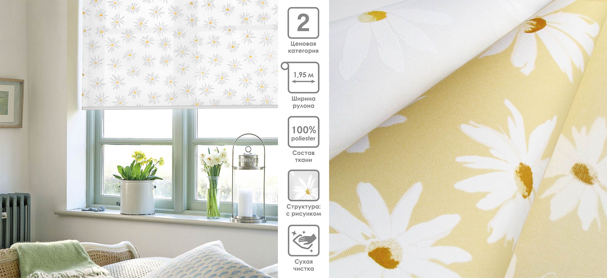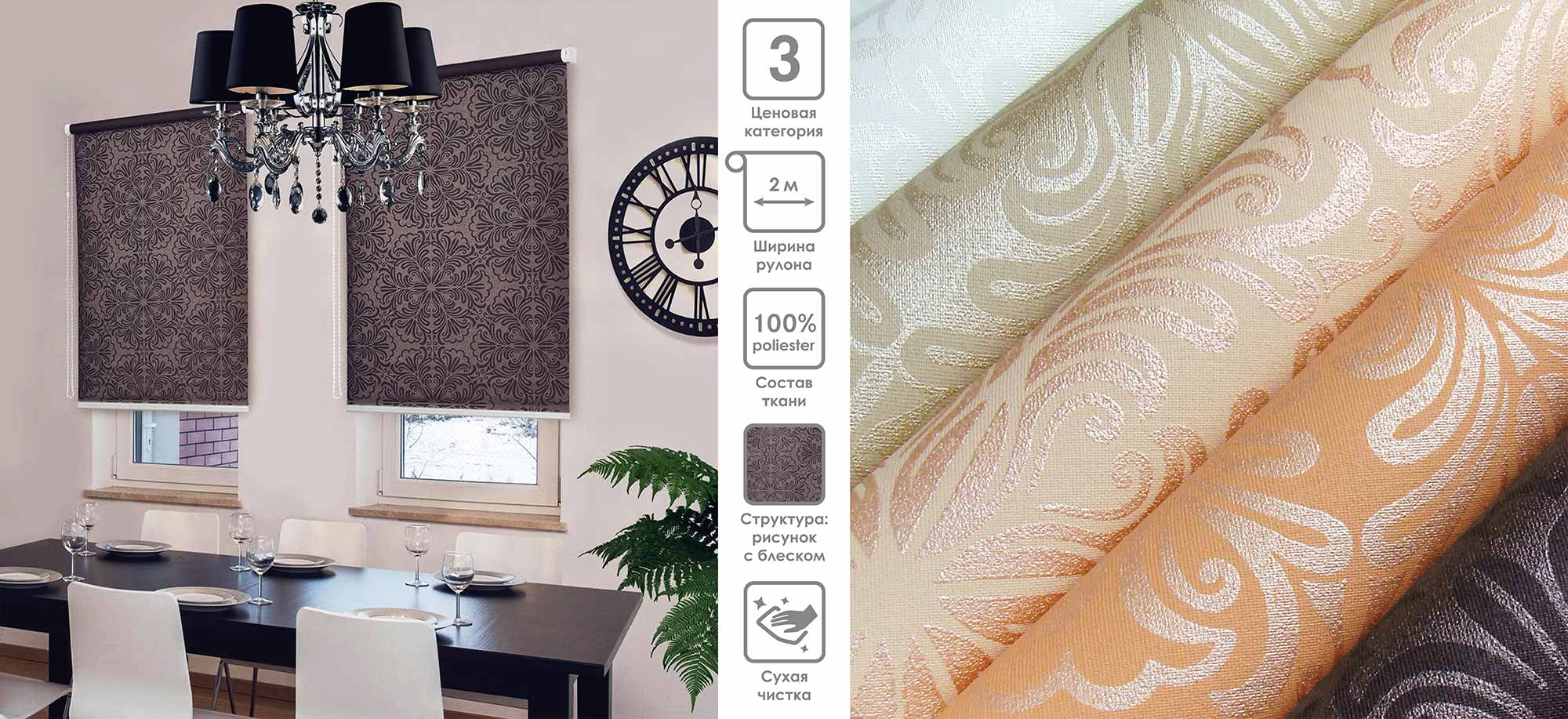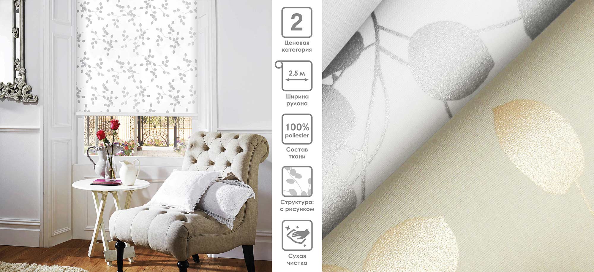 Система «Деколюкс» являє собою тканинну ролету в коробі з пружинним механізмом.