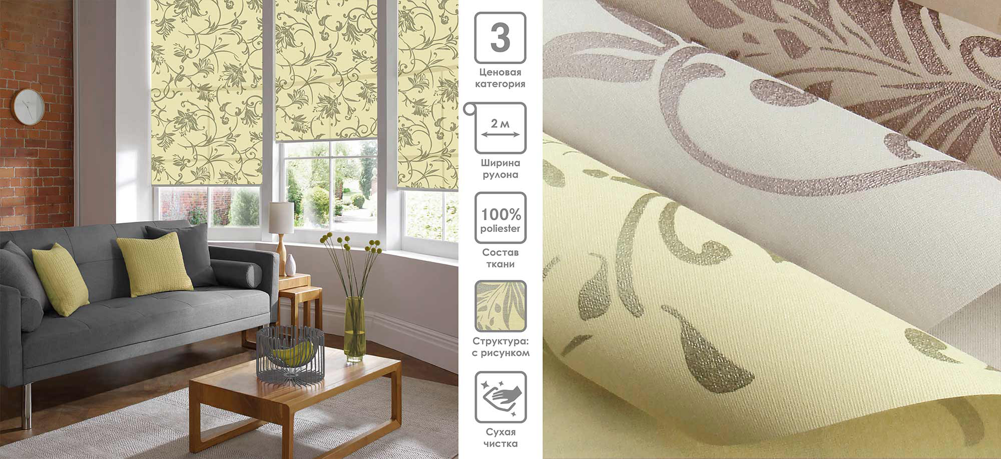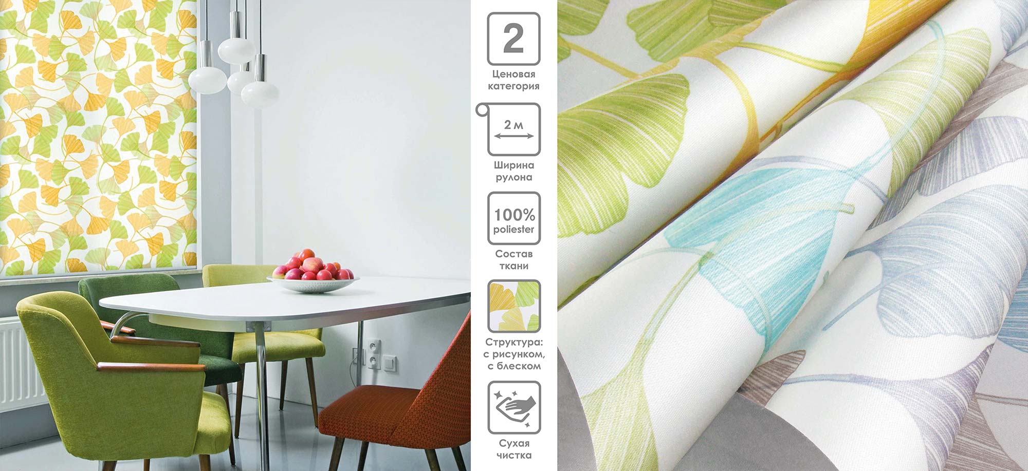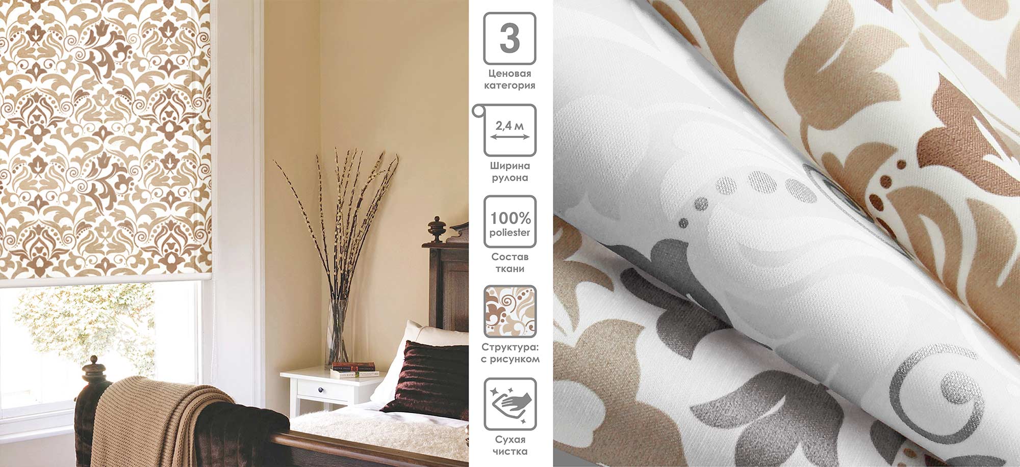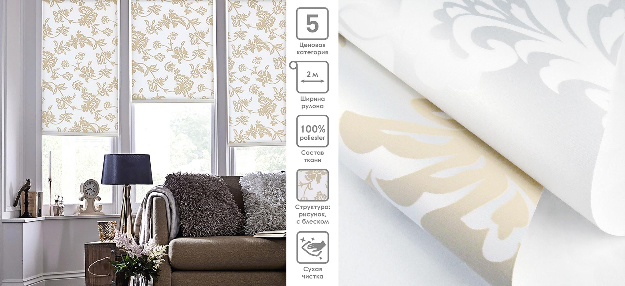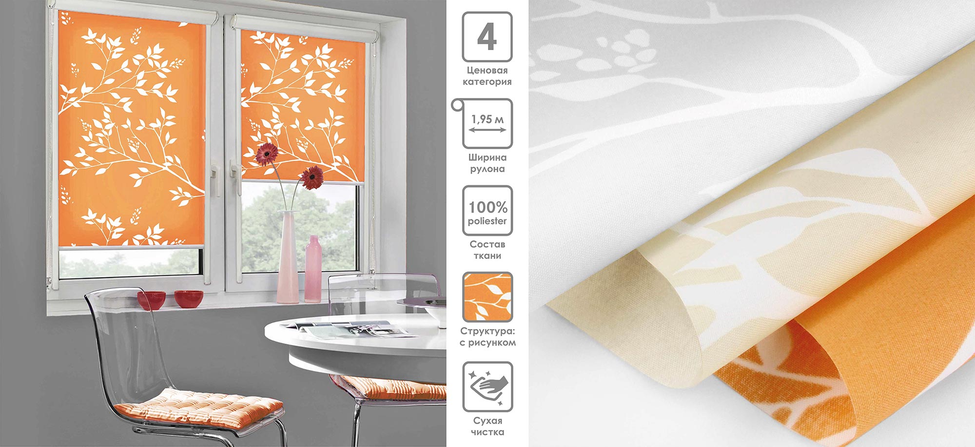 Система «Деколюкс» являє собою тканинну ролету в коробі з пружинним механізмом.