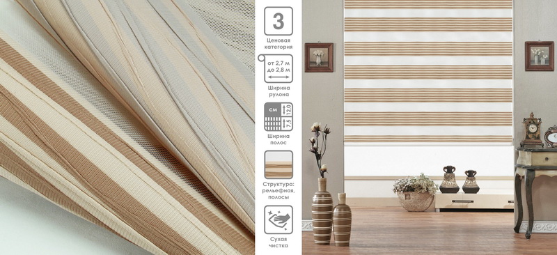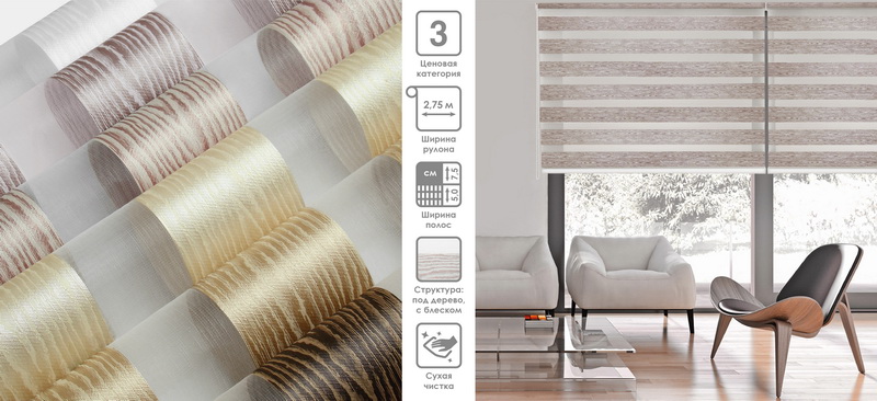 Одна з останніх розробок в області віконних декорацій являється система ролет "День-Ніч", яка є різновидом тканинної ролети. Особливістю цієї ролети являється подвійне положення тканини і чергування полосок (тканини і сіточки). При плавному русі тканини по колу полоси зміщуються, відкриваючи вигляд за вікном або повністю закривають його. Це дозволяє плавно регулювати потік світла в приміщенні. Спеціально підібрана колекція тканин, яка відповідає сучасним тенденціям, є прекрасним доповненням до будь-якого інтер’єру.