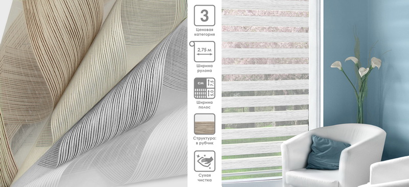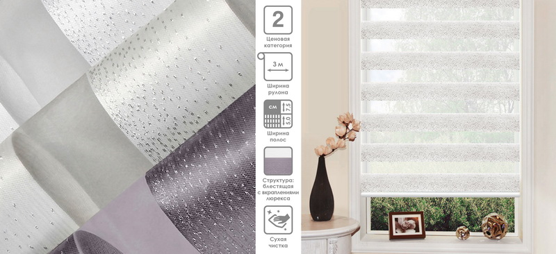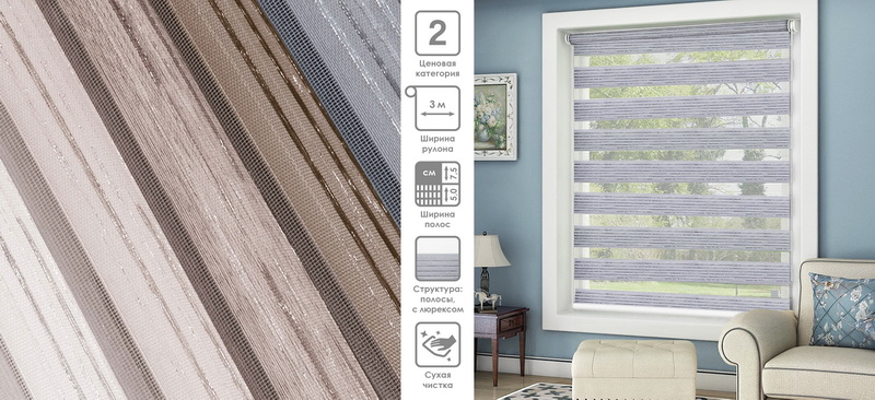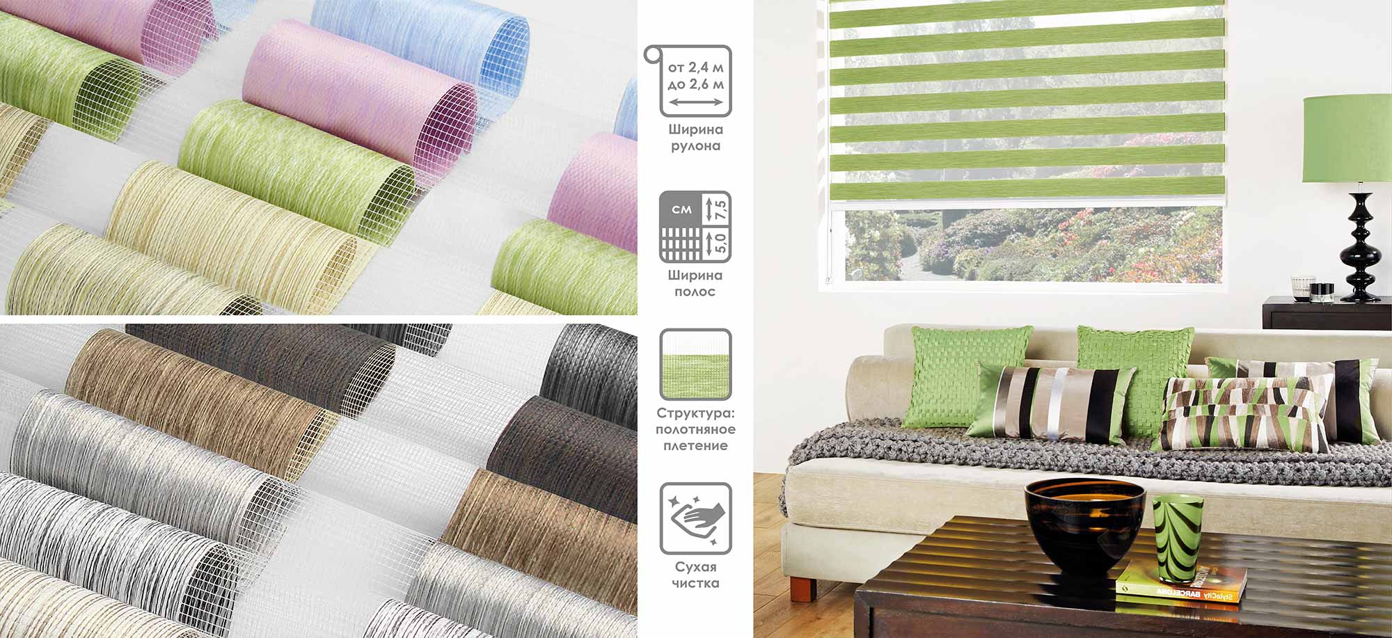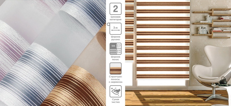 Система день-ніч є різновидом тканинної ролети. Круговий рух тканини і чергування смуг в ній забезпечують можливість плавно регулювати ступінь освітленості в приміщенні. Дані системи день-ніч являються відкритим типом ролет.