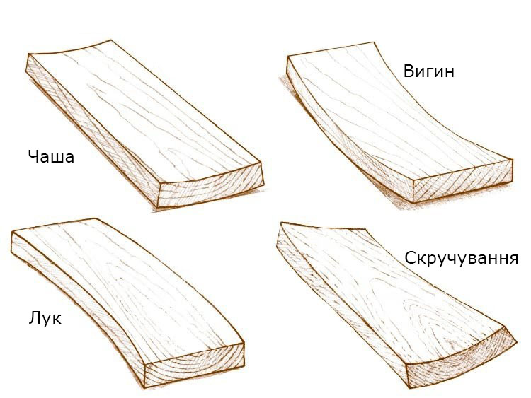 Види деформації деревини: