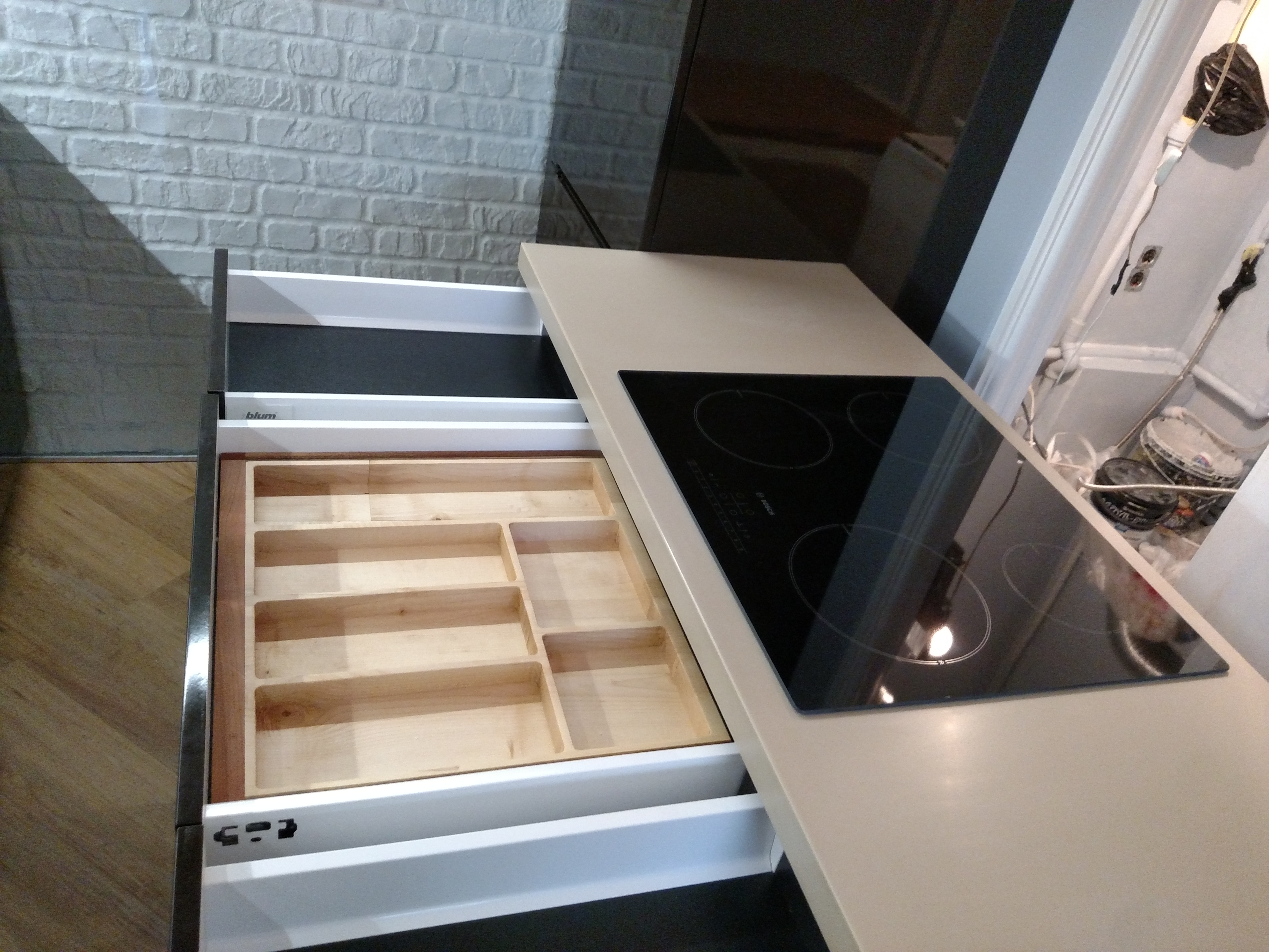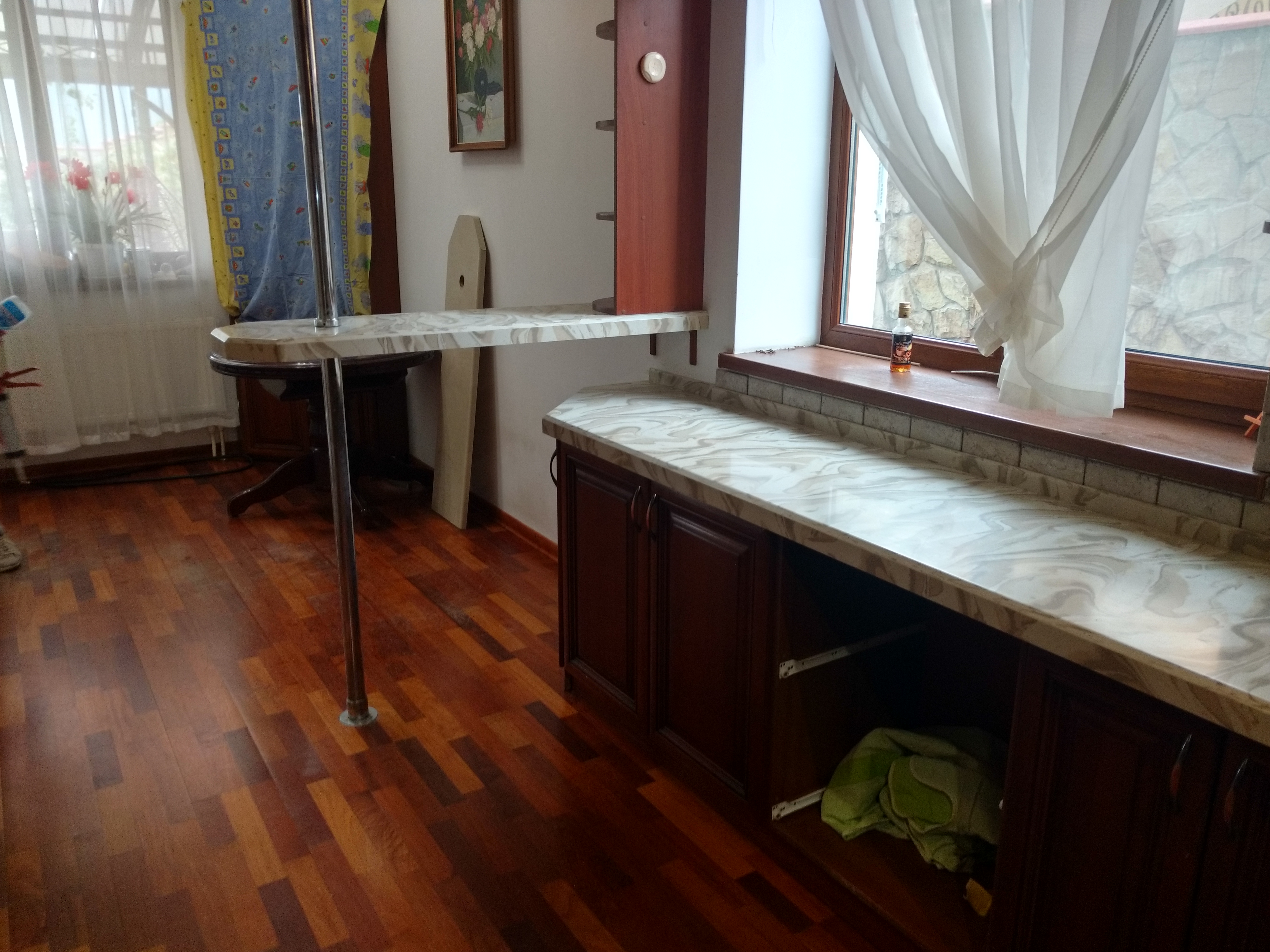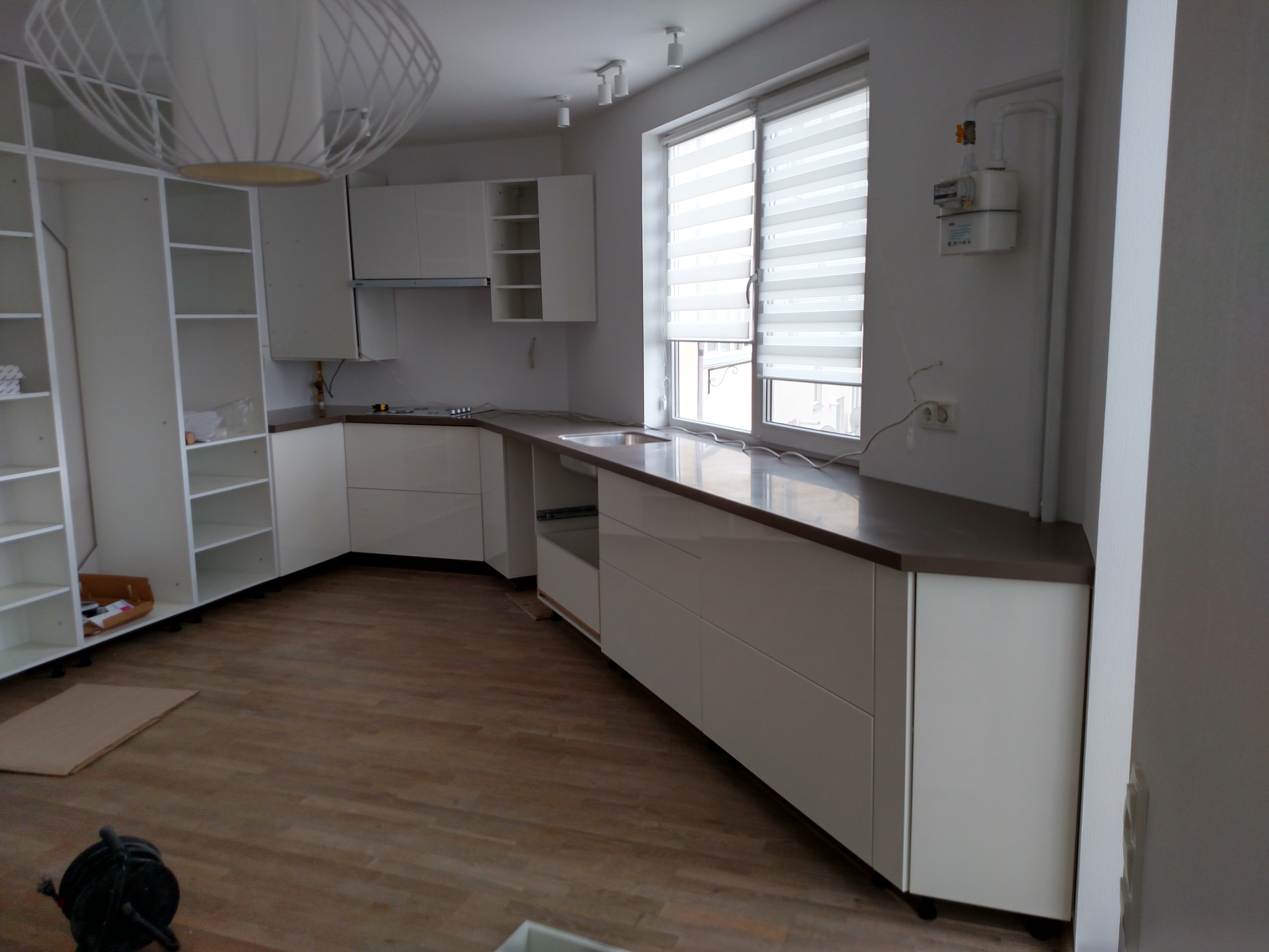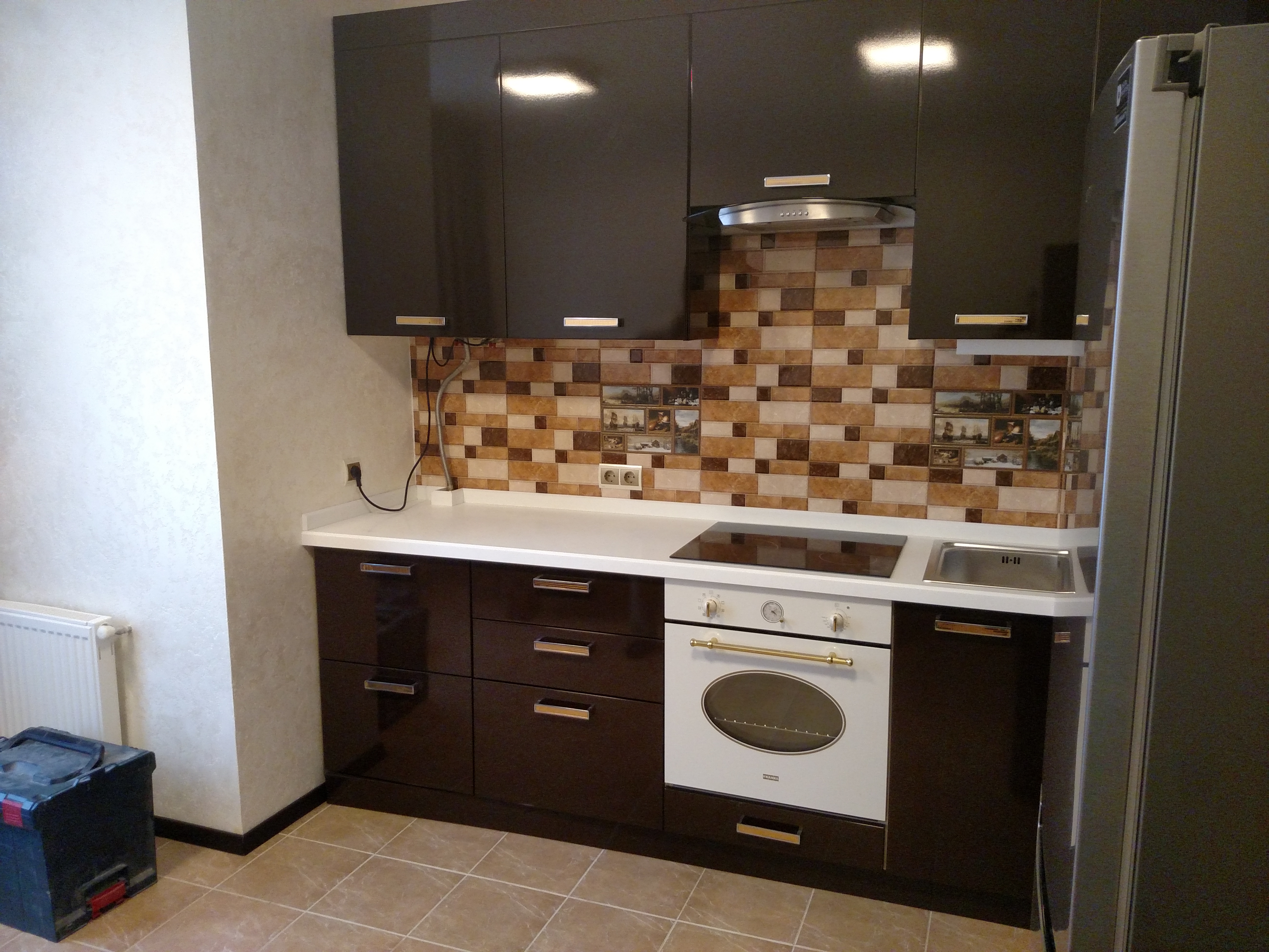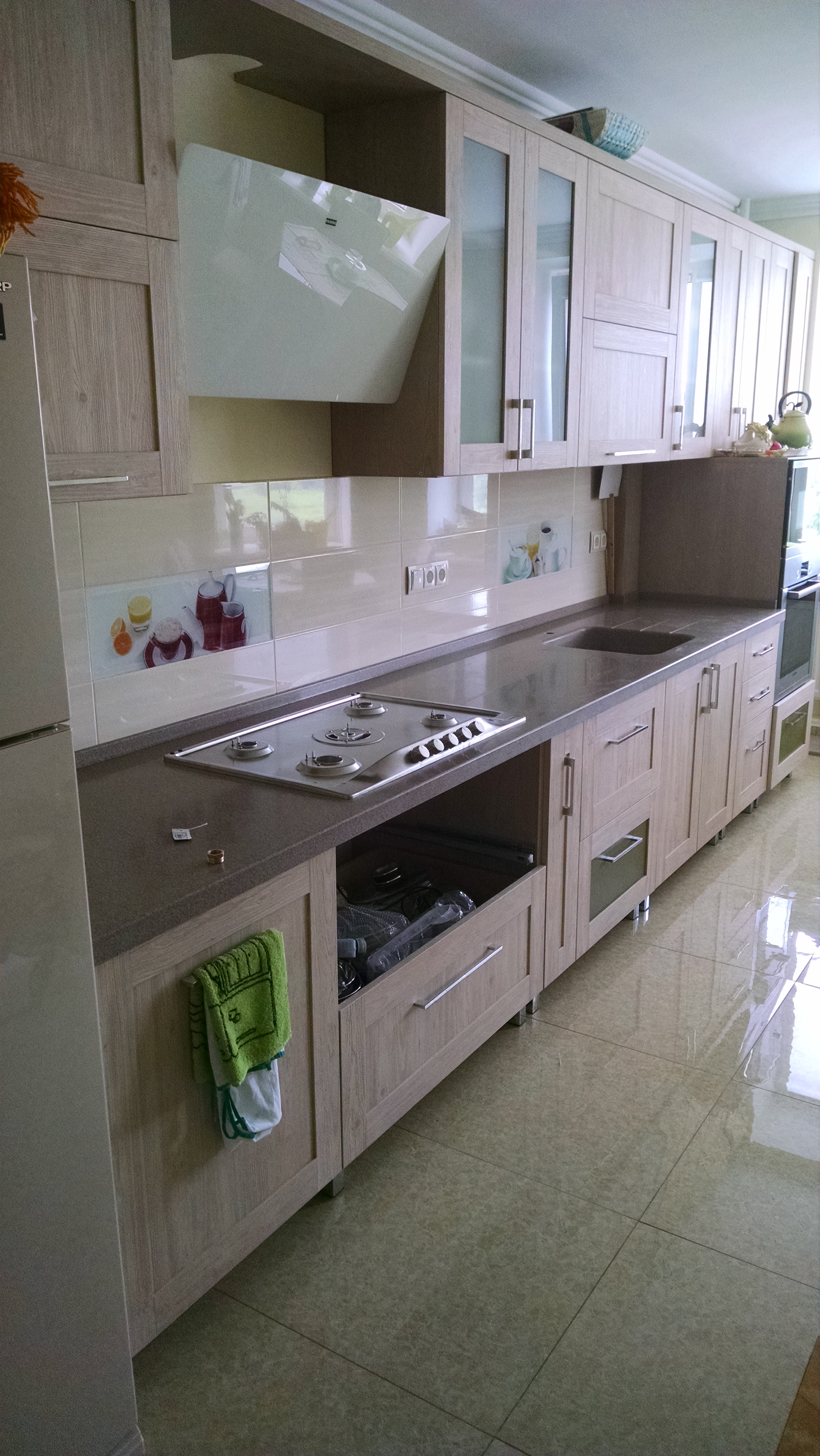 Приклад на фото. Розмір стільниці зі штучного каменю: 1800x2500 мм. Глибина обох сторін: 600 мм. У вартість стільниці входить: внутрішній, зовнішній радіус і мийка. Ціна даної стільниці зі штучного каменю 1450$.