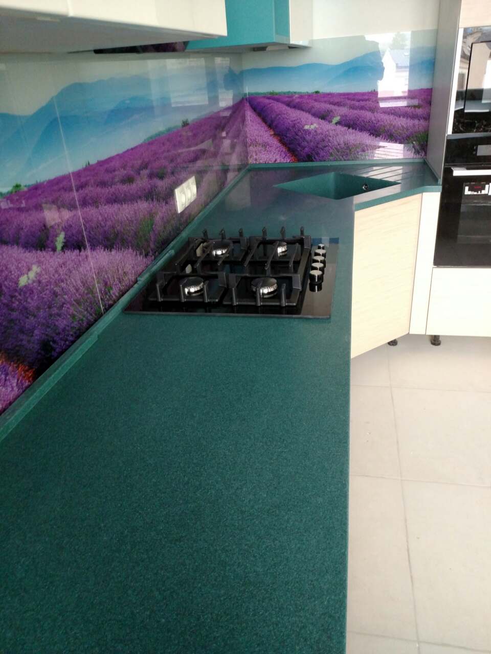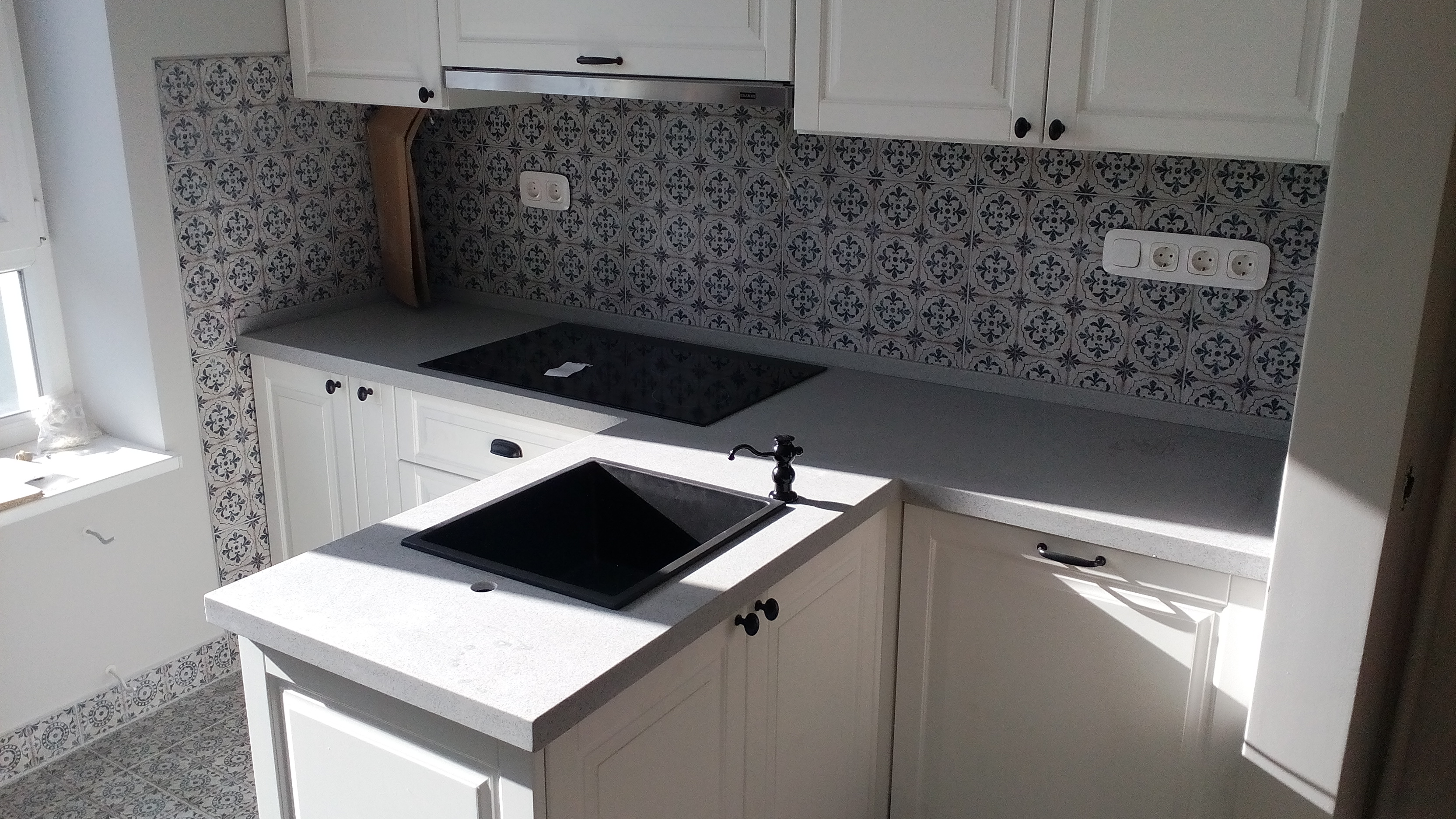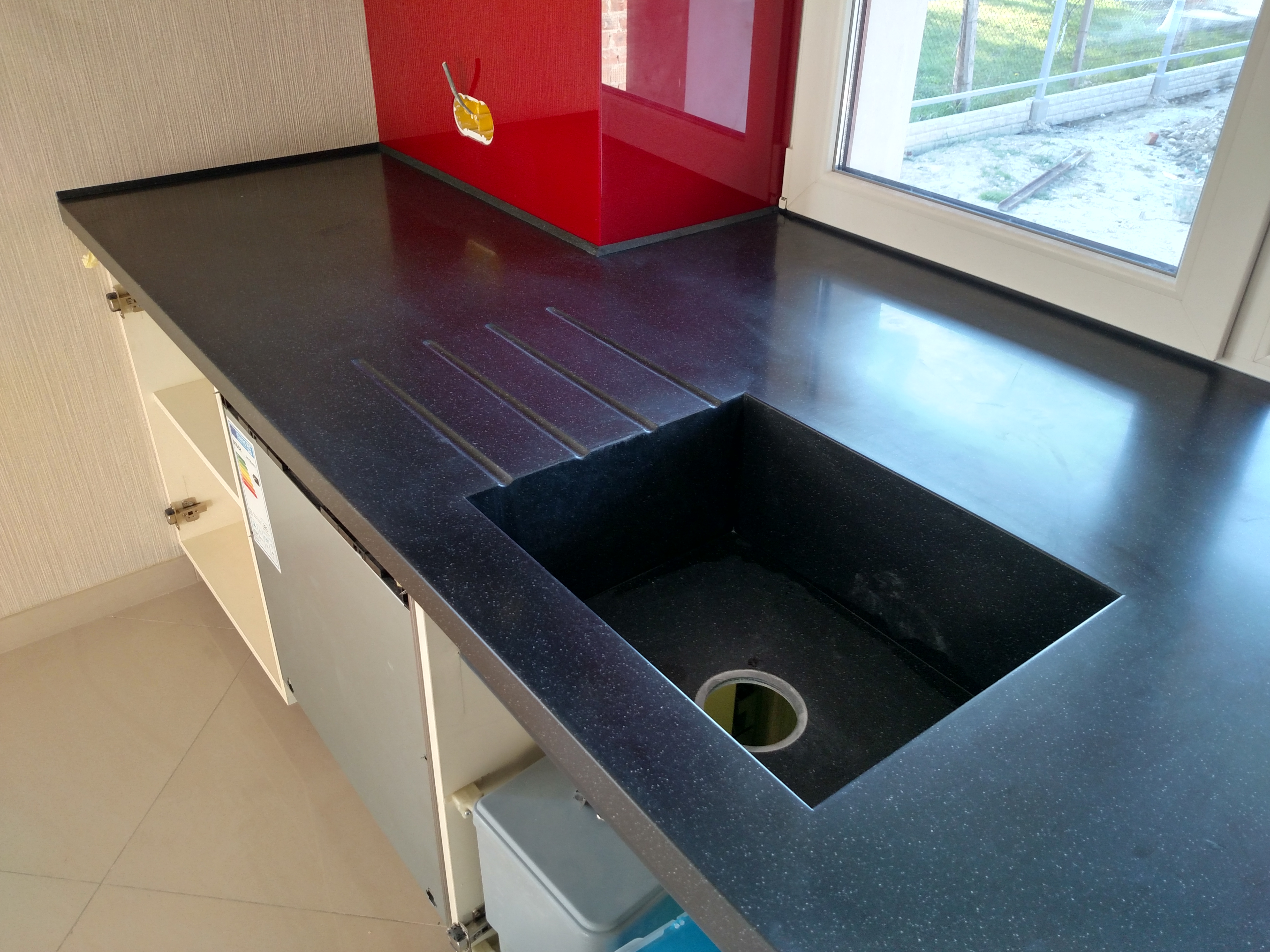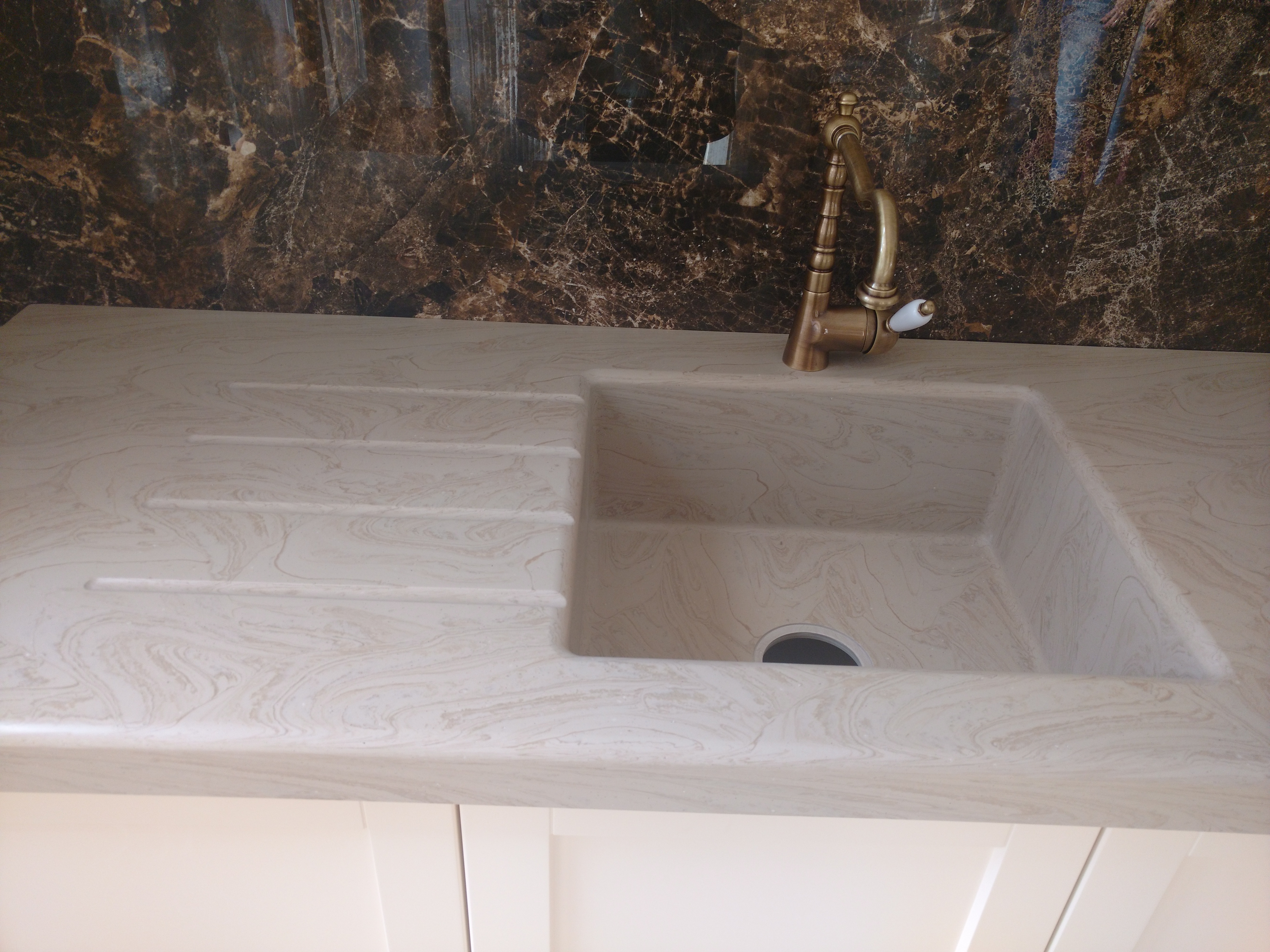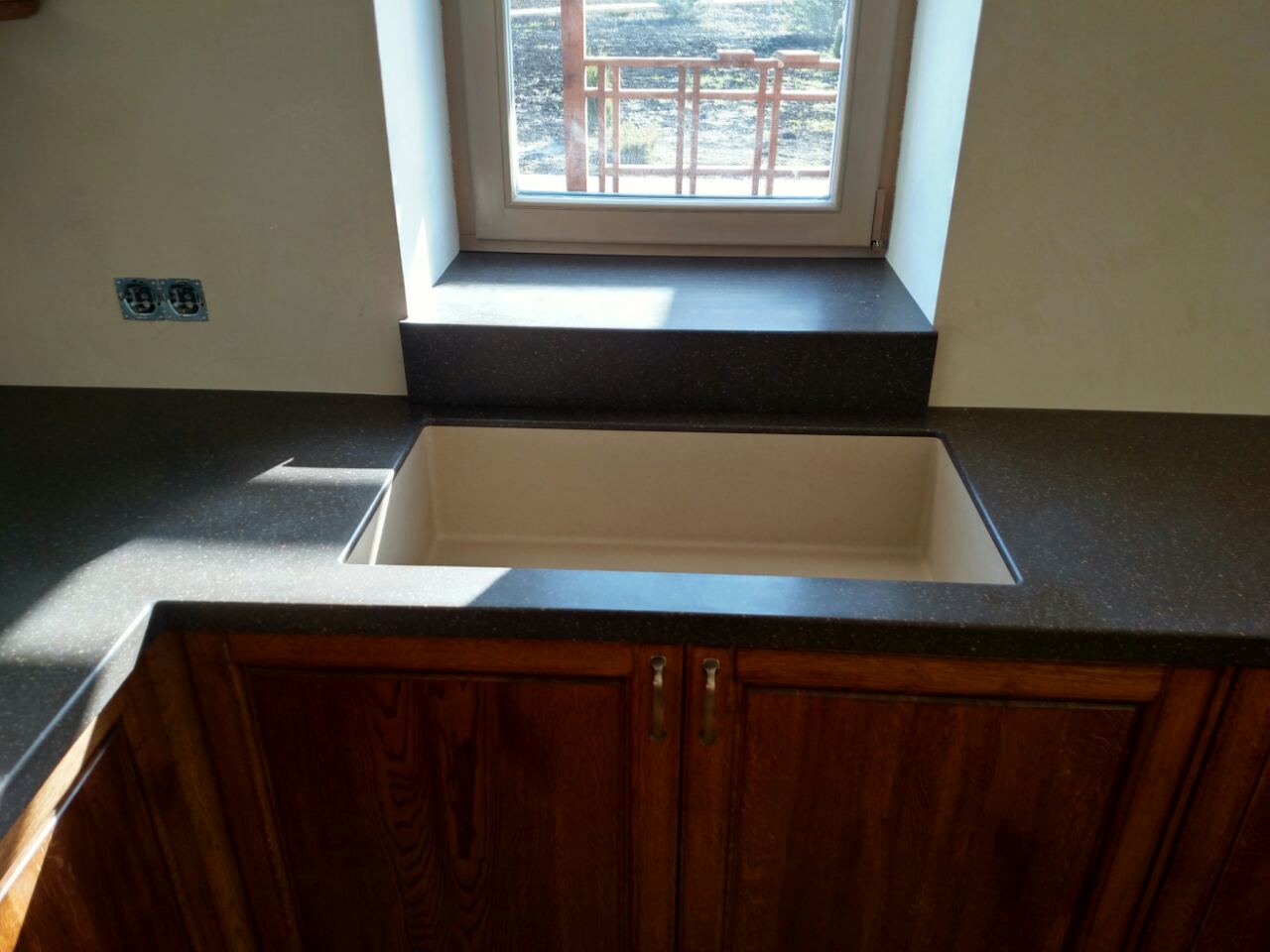 Оскільки штучний камінь монолітний, не має мікропор і тріщин, він ідеально підійде для робочої поверхні на кухні. Він не вбирає бруд, де можуть накопичуватись мікроби або цвіль, не піддається впливу температур, хімічних речовин. Будь-які забруднення з каменю легко видалити звичайною ганчірочкою і миючим засобом (без абразивних частинок).