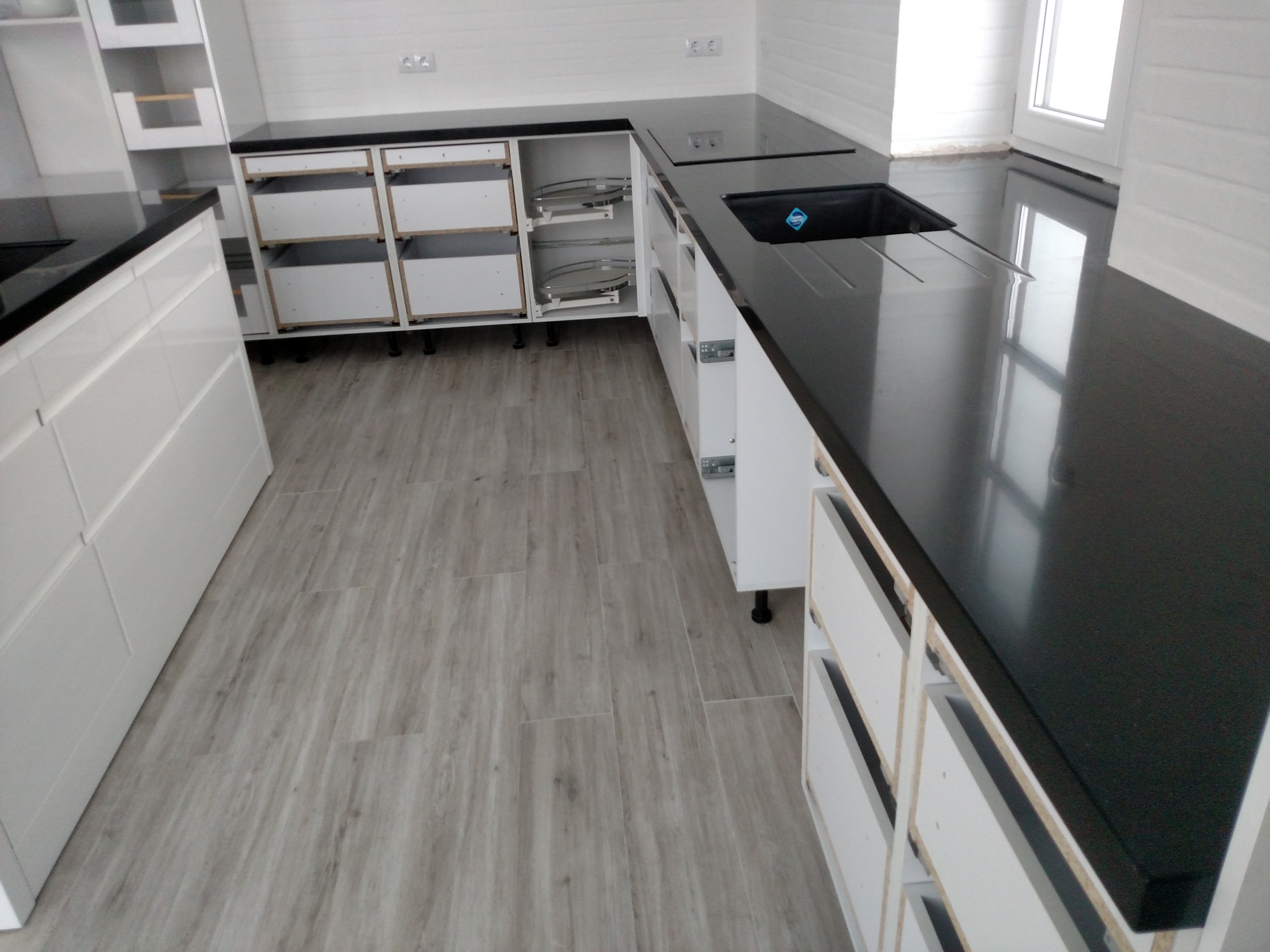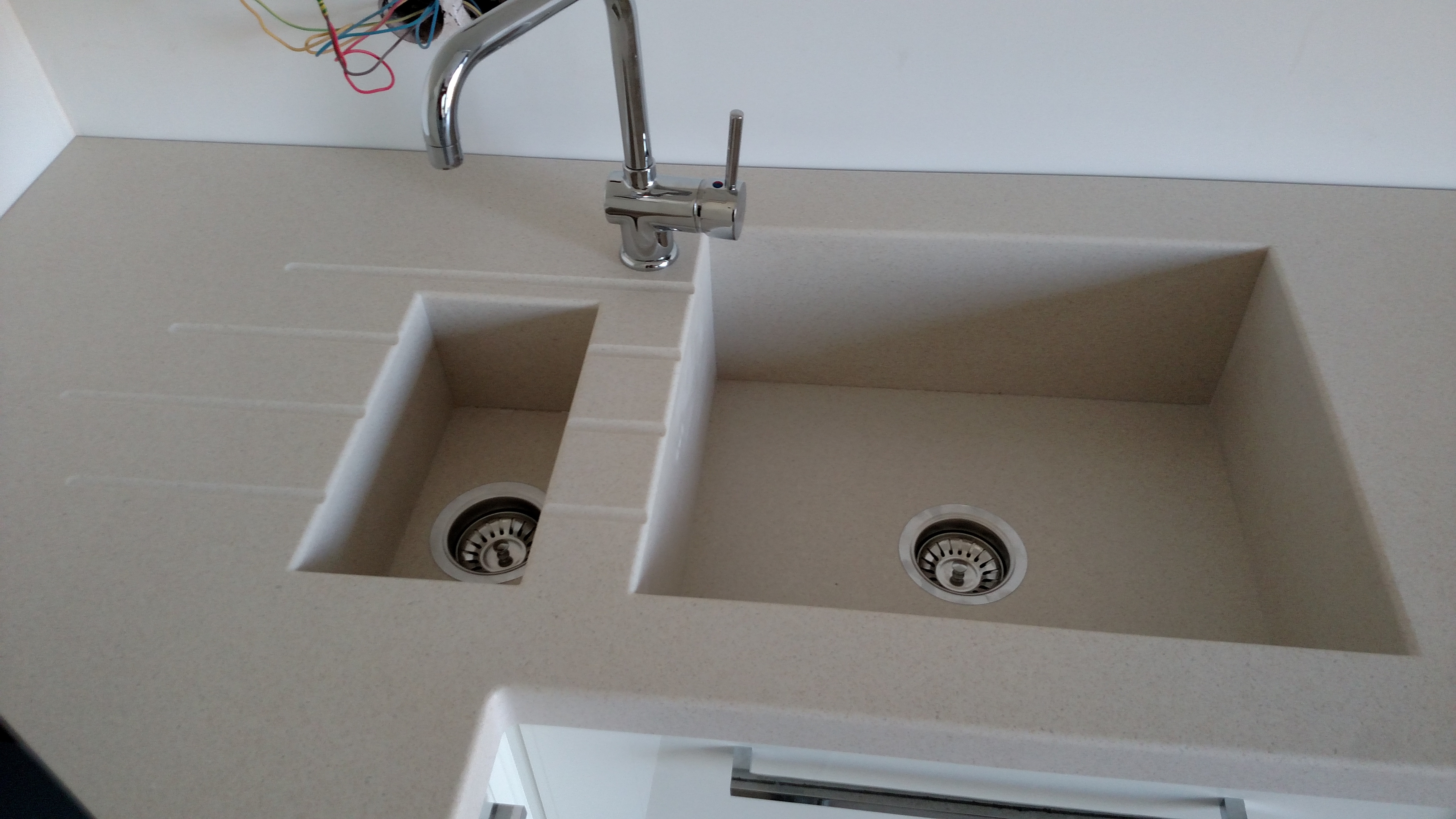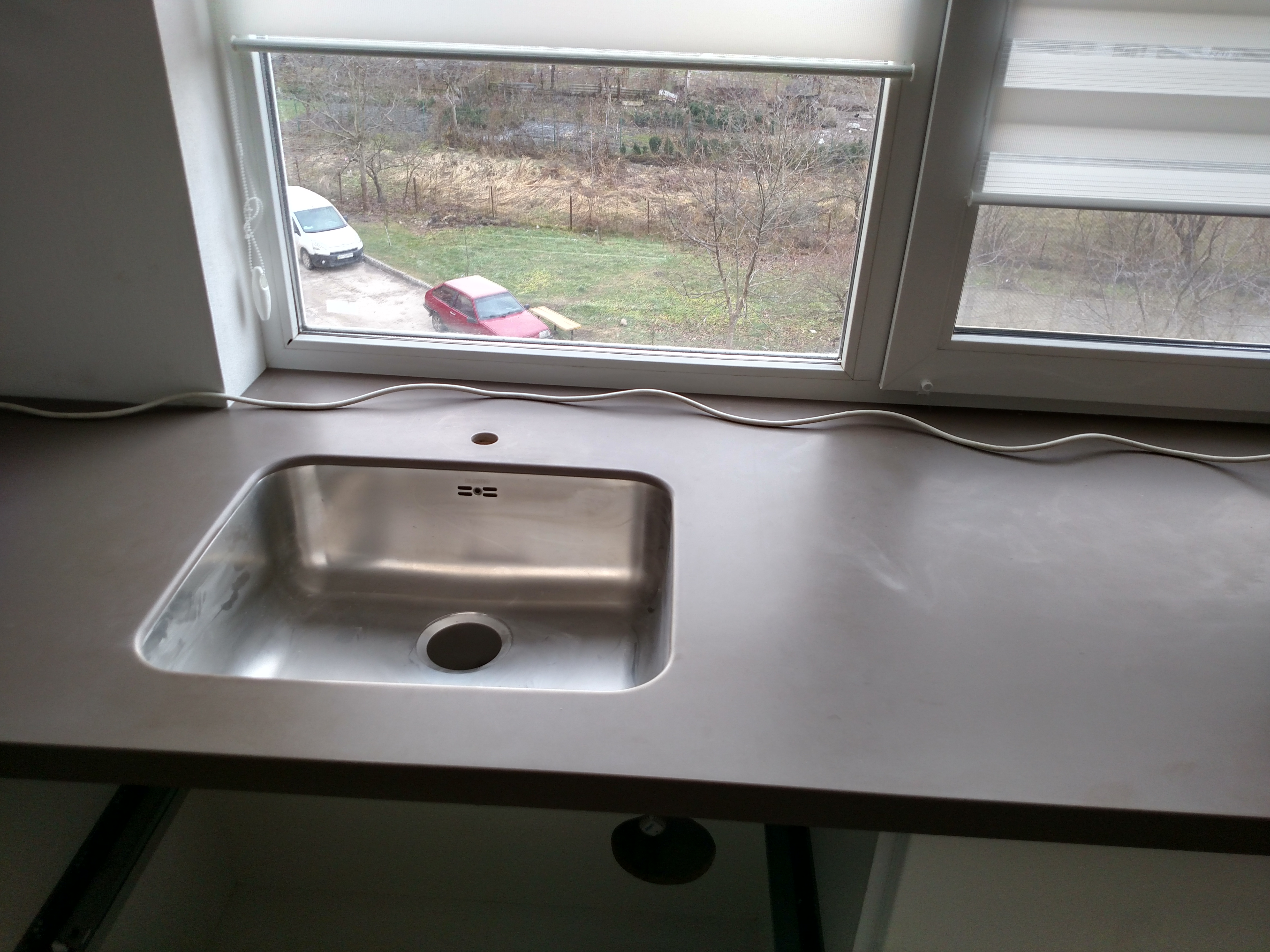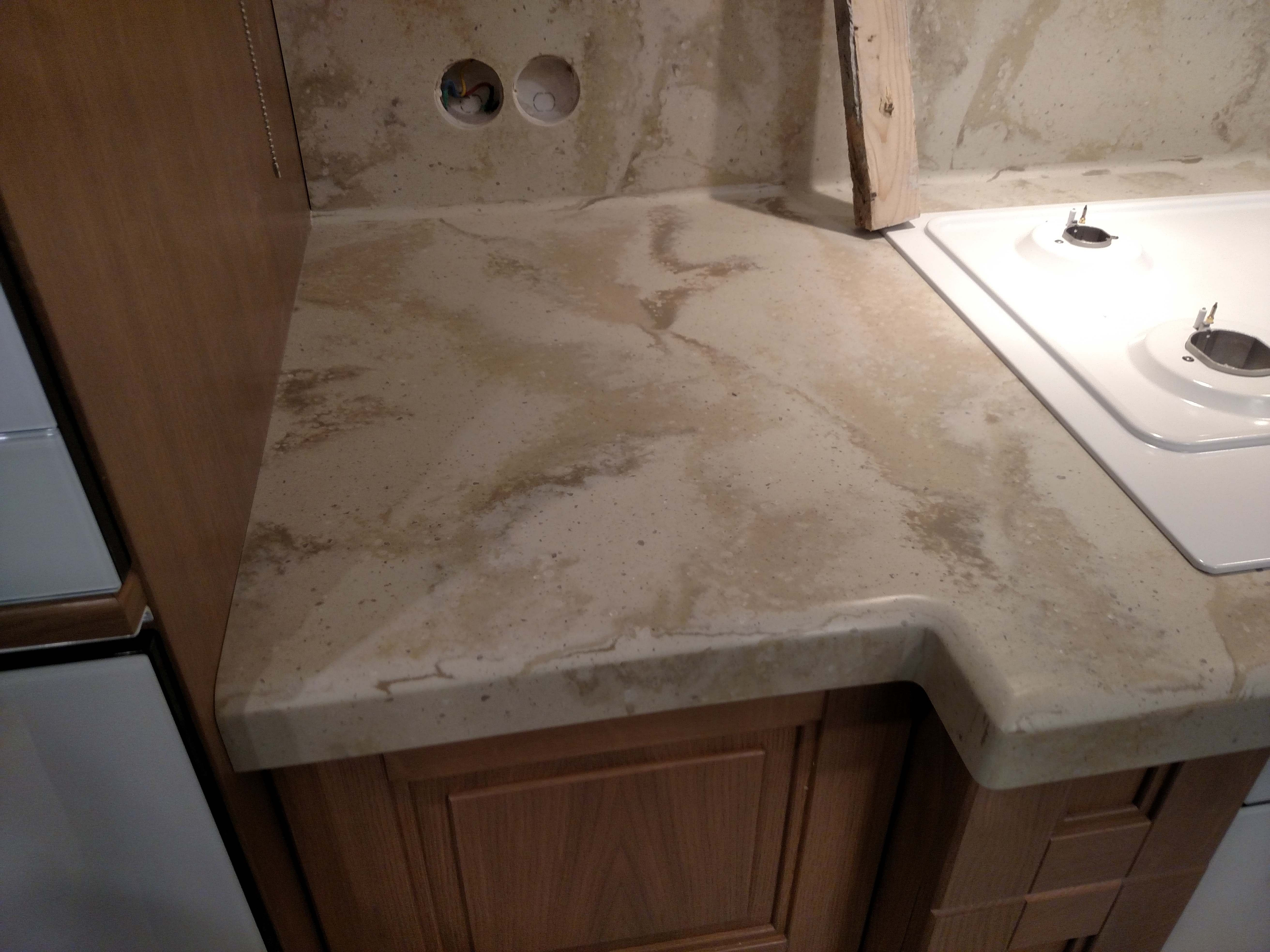 Оскільки штучний камінь монолітний, не має мікропор і тріщин, він ідеально підійде для робочої поверхні на кухні. Він не вбирає бруд, де можуть накопичуватись мікроби або цвіль, не піддається впливу температур, хімічних речовин. Будь-які забруднення з каменю легко видалити звичайною ганчірочкою і миючим засобом (без абразивних частинок).