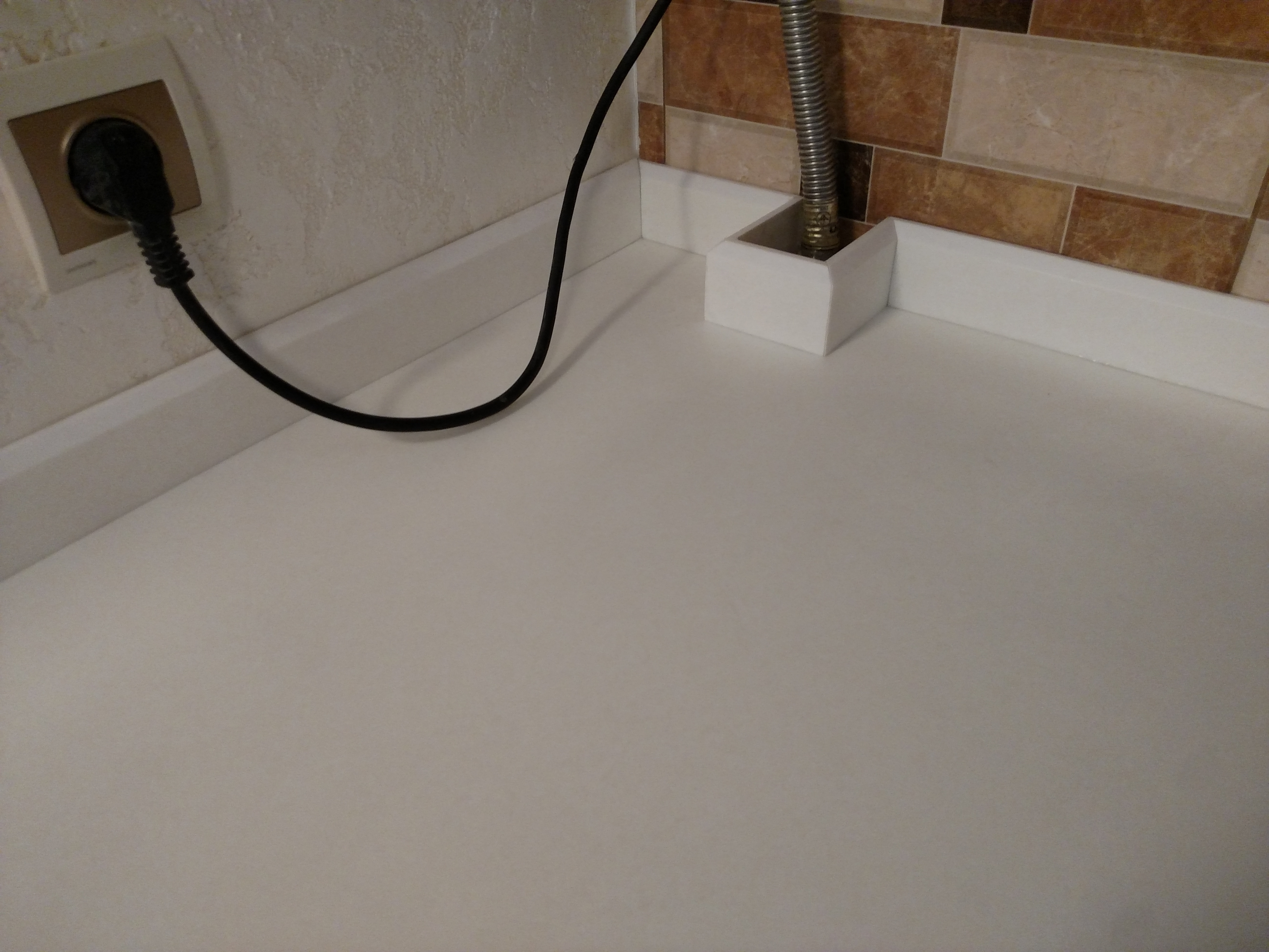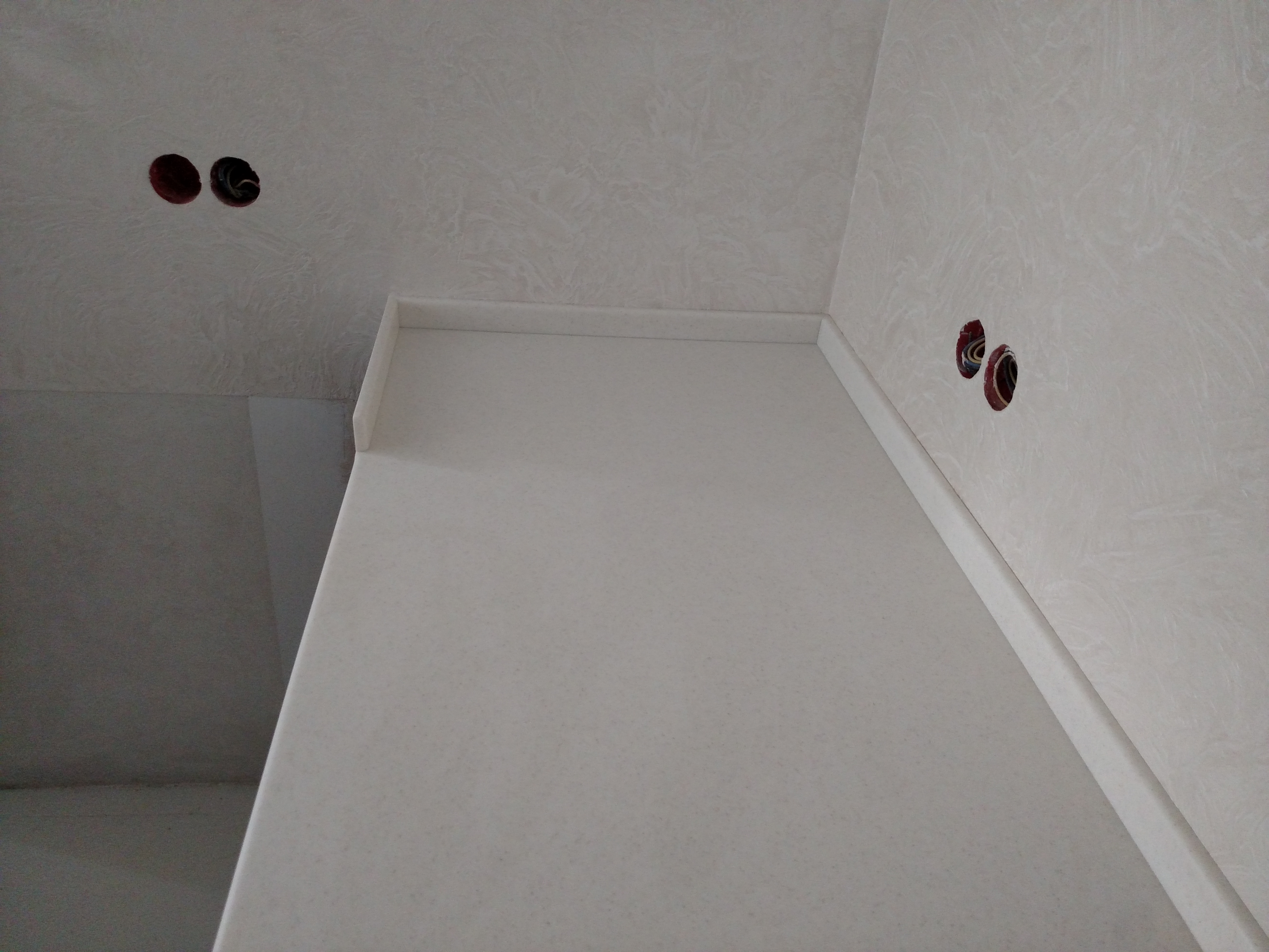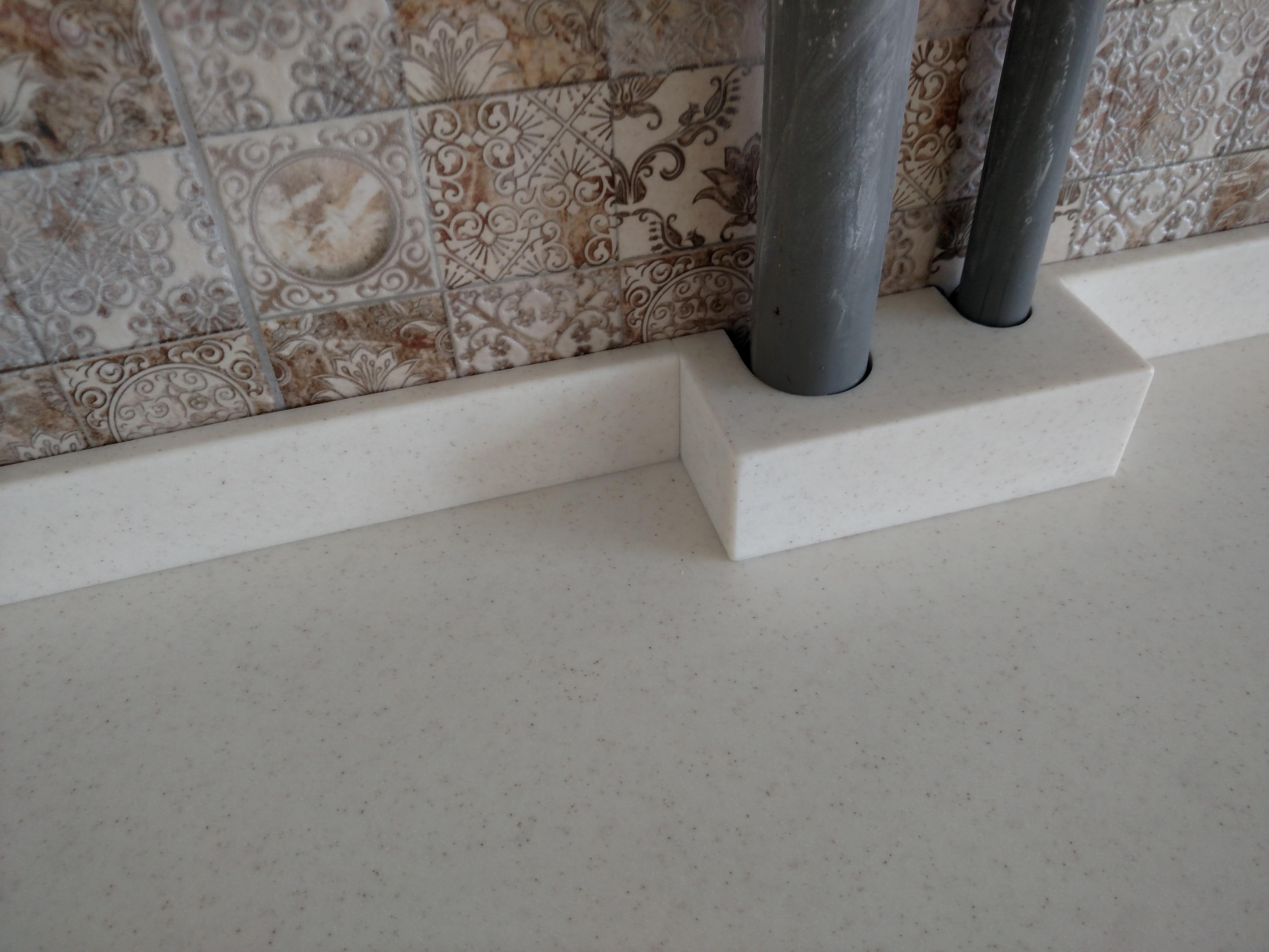 Пристінковий плінтус може бути прямий та скруглений. Пристінковий плінтус виконує декоративну функцію і закриває щілину між стільницею і стіною. Плінтус не допускає проникнення рідини і потрапляння різних предметів за стільницю зі штучного каменю і виготовляється в колір стільниці.
