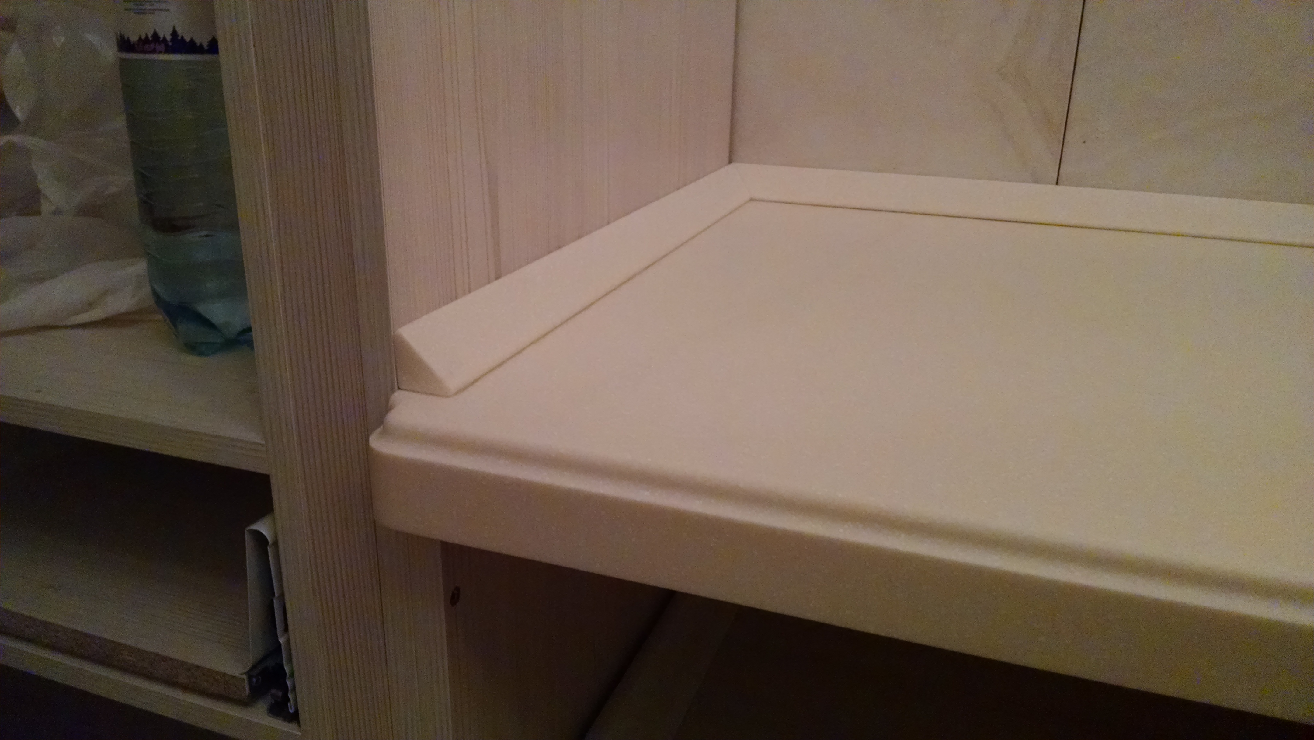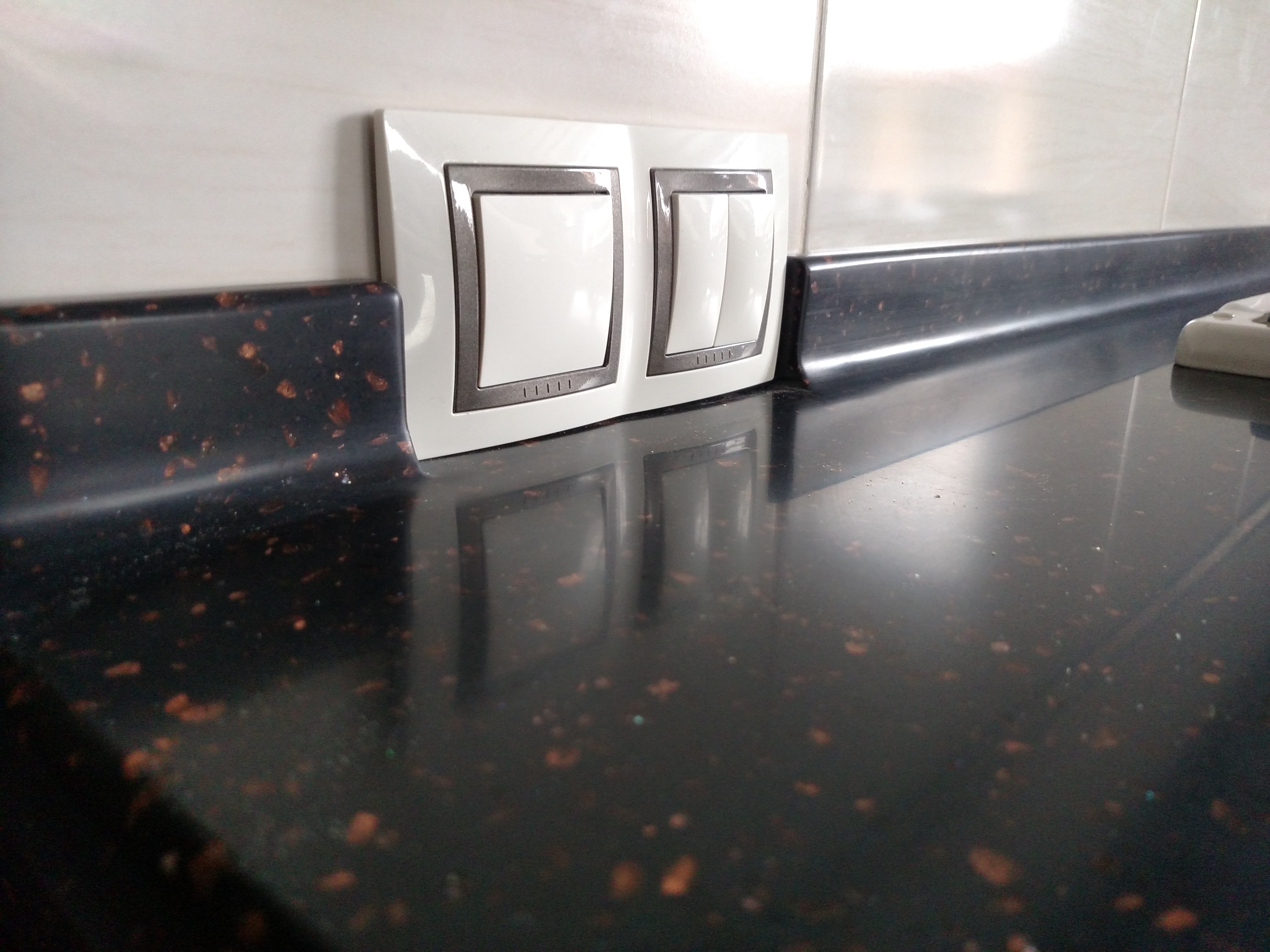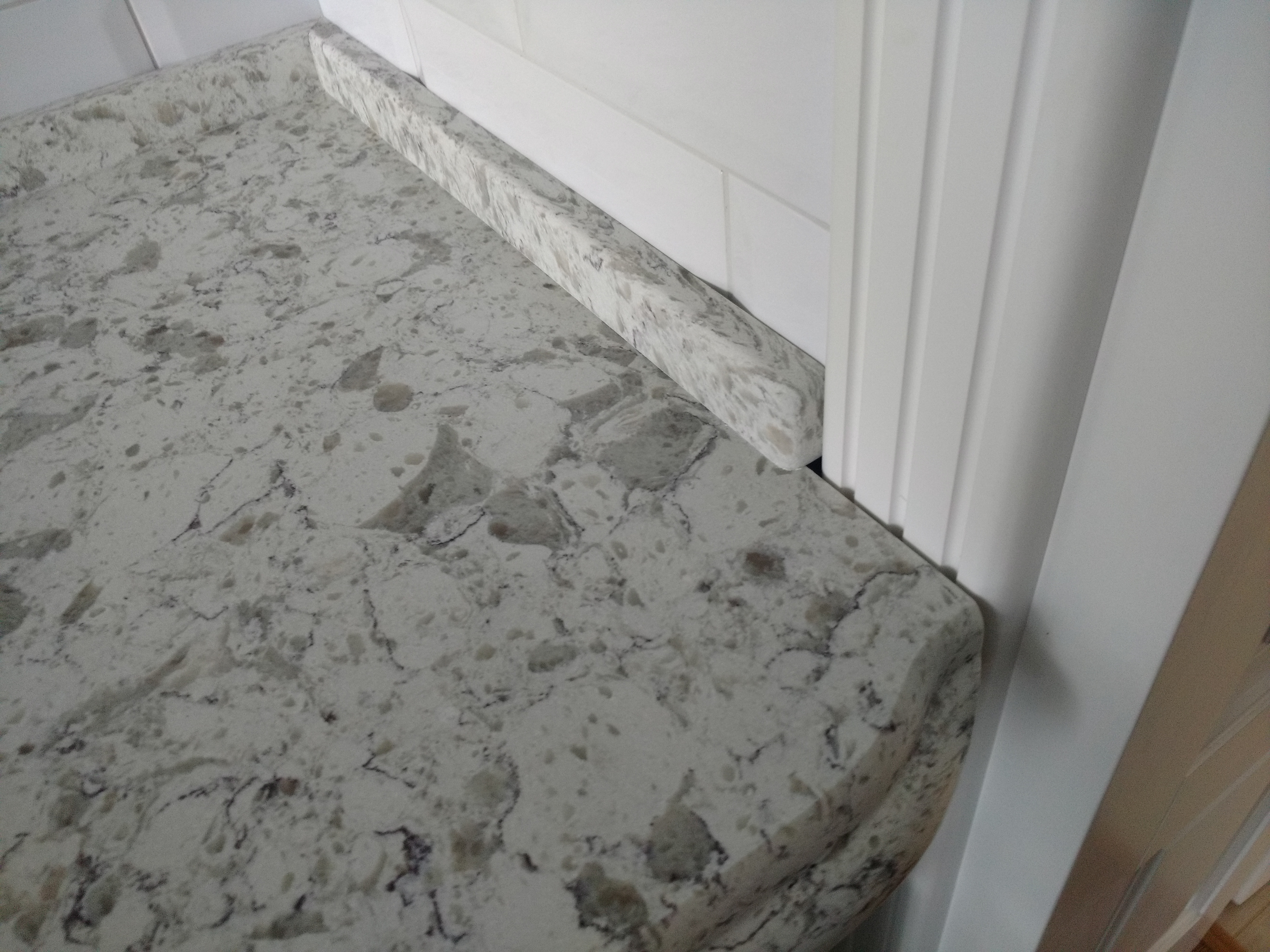Пристінковий плінтус може бути прямий та скруглений. Пристінковий плінтус виконує декоративну функцію і закриває щілину між стільницею і стіною. Плінтус не допускає проникнення рідини і потрапляння різних предметів за стільницю зі штучного каменю і виготовляється в колір стільниці.