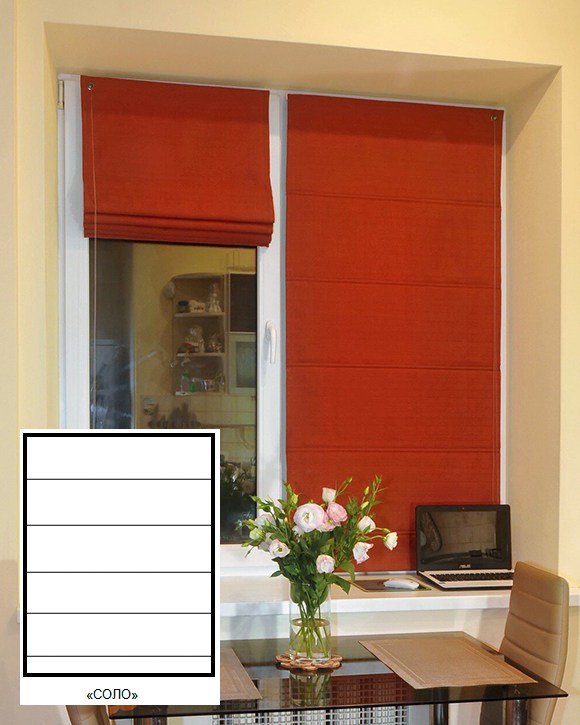 Римські штори - являють собою полотно тканини з обробленими краями, які в піднятому вигляді демонструють акуратно складені складки у верхній частині віконного отвору, а в розправленому стані повністю закривають отвір вікна.